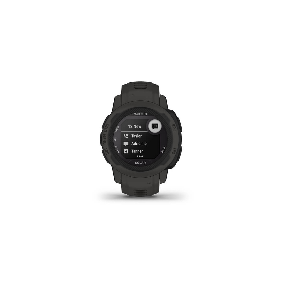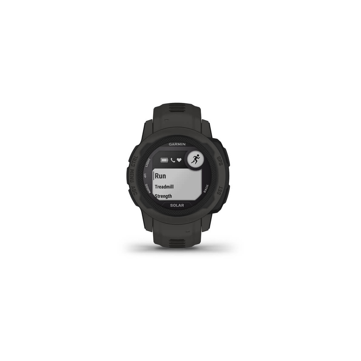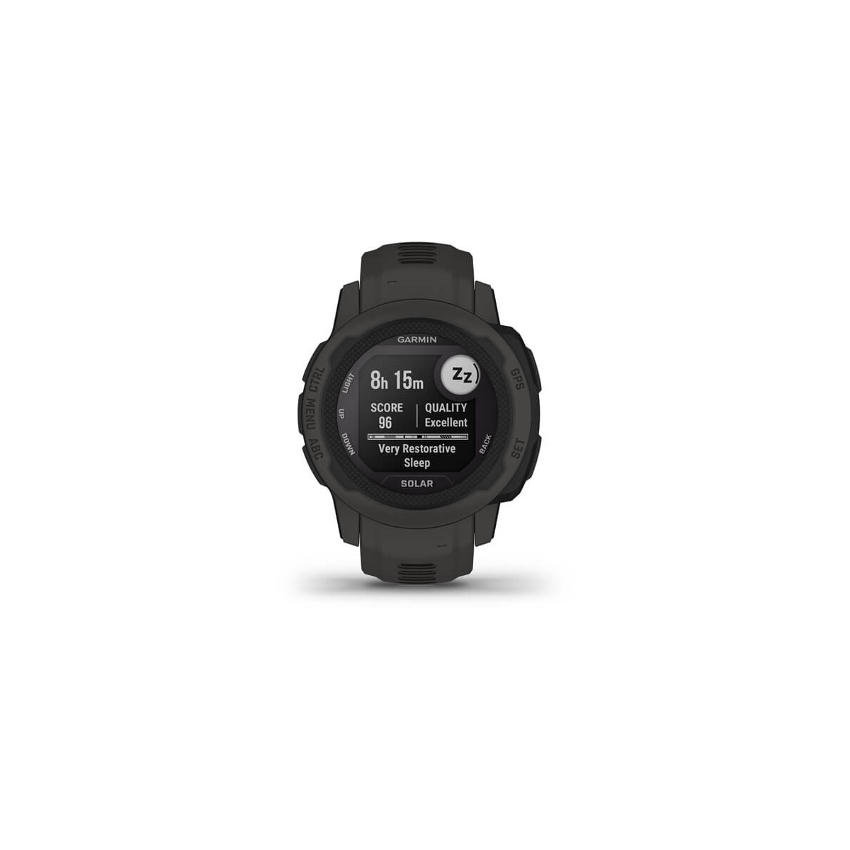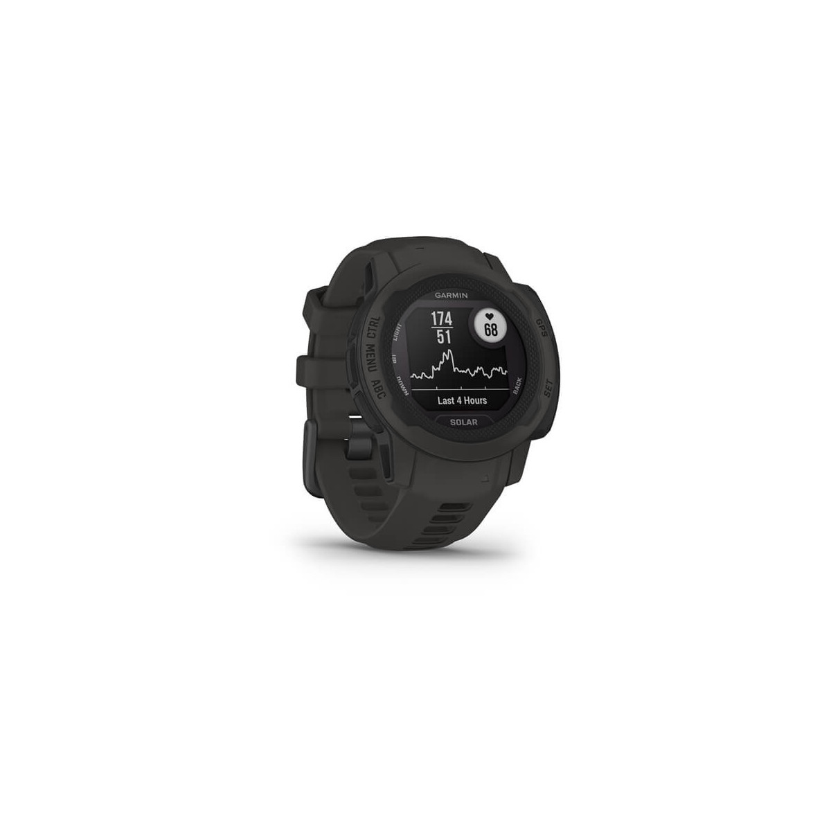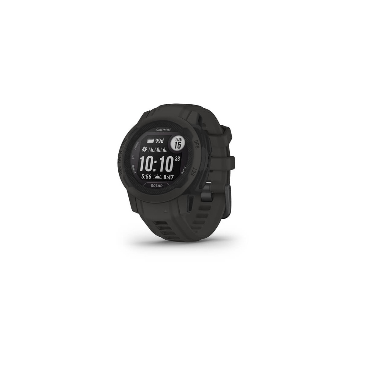 Garmin Instinct 2S Solar. Dimensioni schermo: 2,01 cm (0.79"), Tecnologia display: MIP, Risoluzione del display: 156 x 156 Pixel. GPS (satellitare). Peso: 43 g. Impermeabile fino a: 100 m, Materiale cinturino: Silicone, Colore cinturino: Grafite, Dimensione del cinturino: Taglia unica