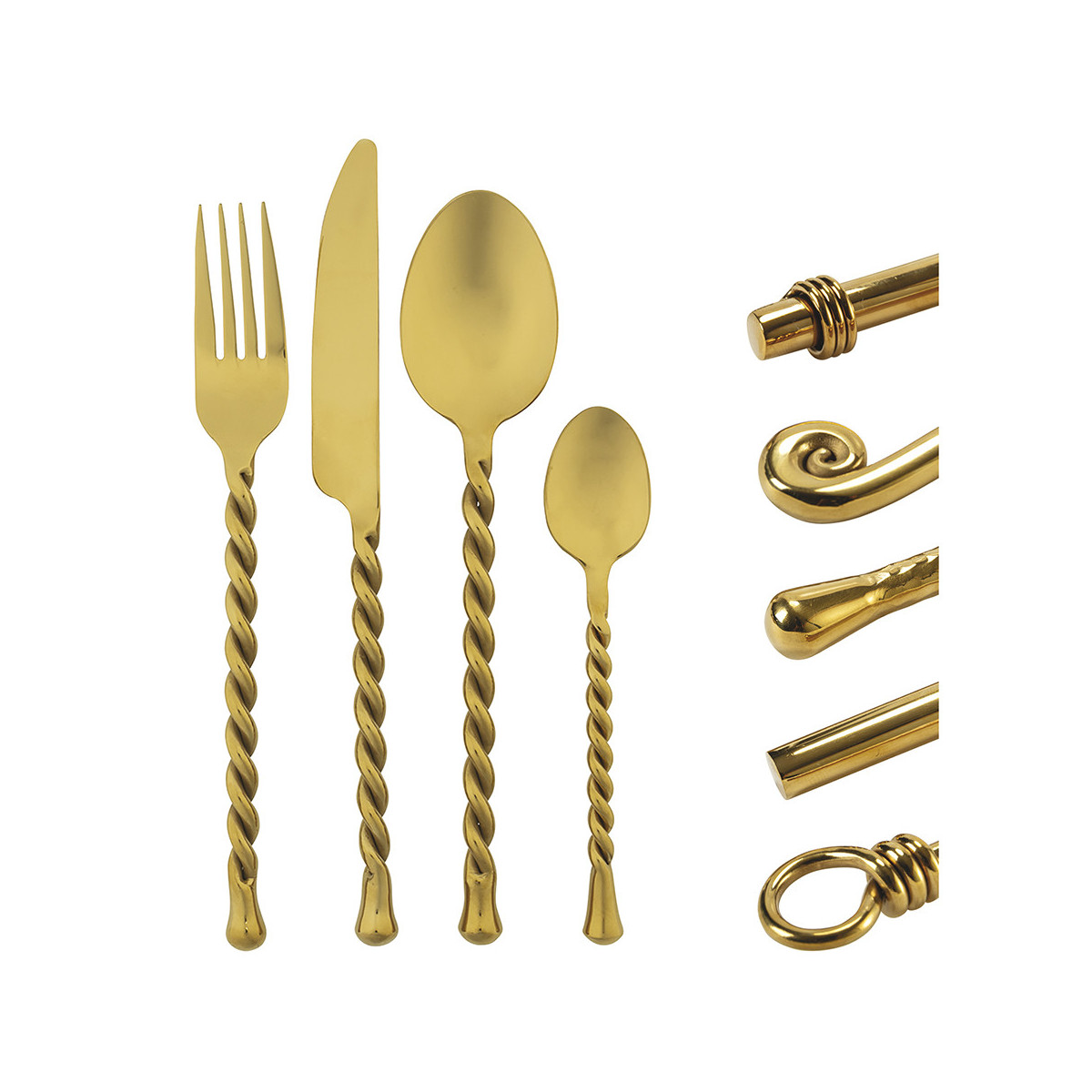 6 forme differenti Il set si compone di 6 cucchiaini, 6 cucchiai, 6 forchette, 6 coltelli