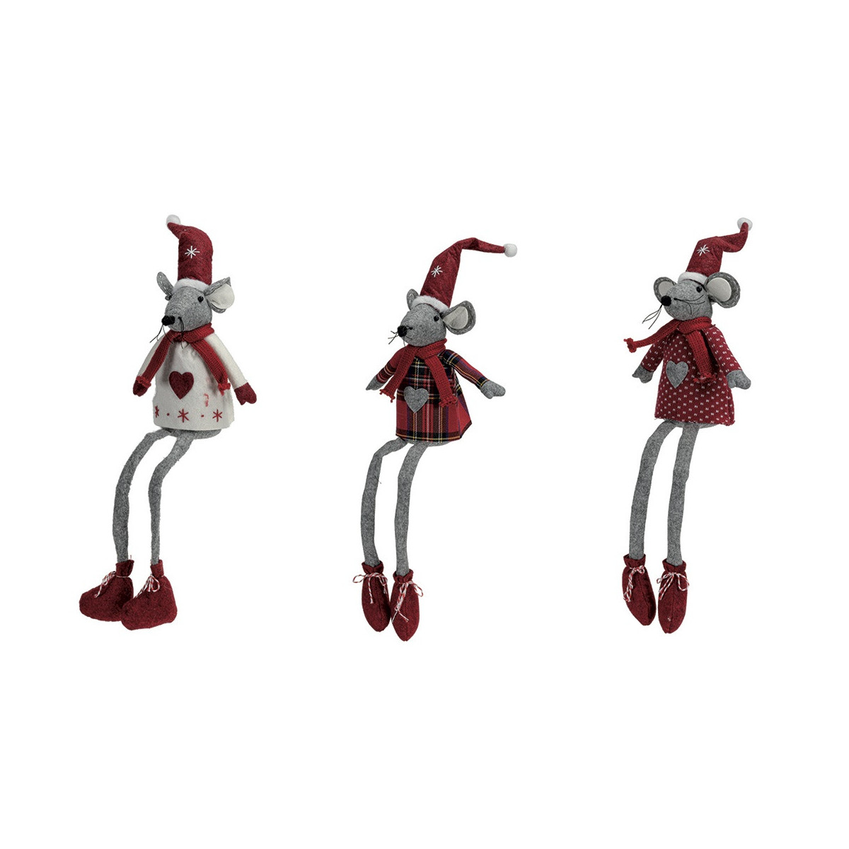 Villa D'este Home Tivoli 'Trendy Christmas', Set 3 Topini gambe morbide h.34 cm