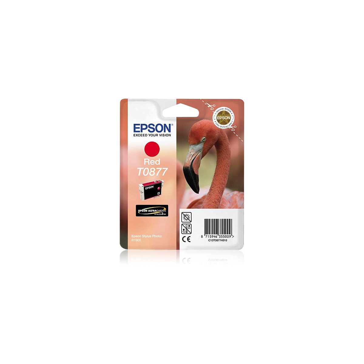 Epson Flamingo Cartuccia Rosso. Tipo: Originale, Tipo di inchiostro: Inchiostro a base di pigmento, Colori di stampa: Rosso. Larghezza imballo: 145 mm, Profondità imballo: 33 mm, Altezza imballo: 120 mm. Ampiezza del pallet: 80 cm, Lunghezza del pallet: 120 cm, Altezza del pallet: 130,5 cm