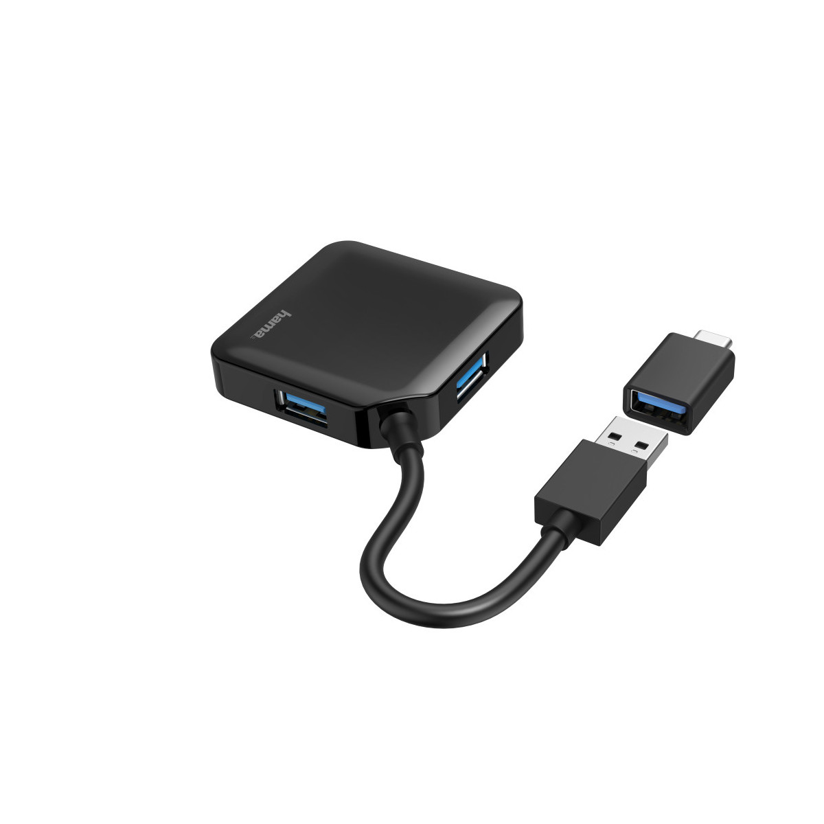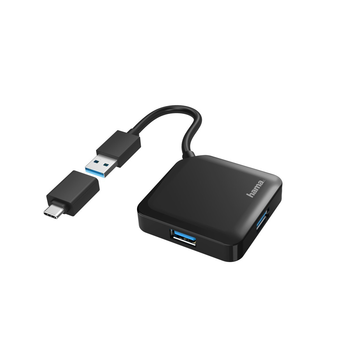 Hama Hub USB 3.0 da tavolo, 4 porte, cavo integrato con adattatore Type C,nero