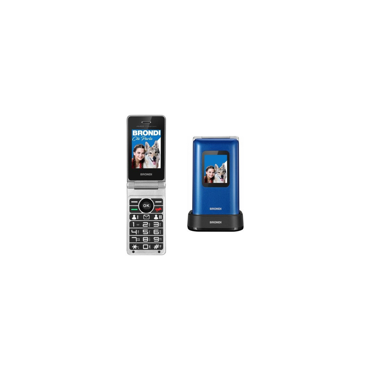 BRONDI CELLULARE AMICO PREZIOSO BLUE 2,8"+1,77" Flip Foto1,3MP DS Bluetooth Base Ricarica