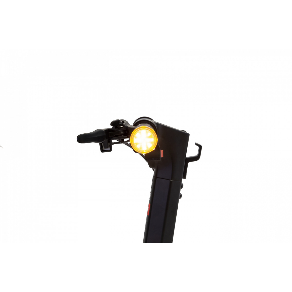 Sospensione anteriore e posteriore, grandi ruote con camera ad aria da 10’’, doppio freno e fanali LED per il massimo comfort di guida.