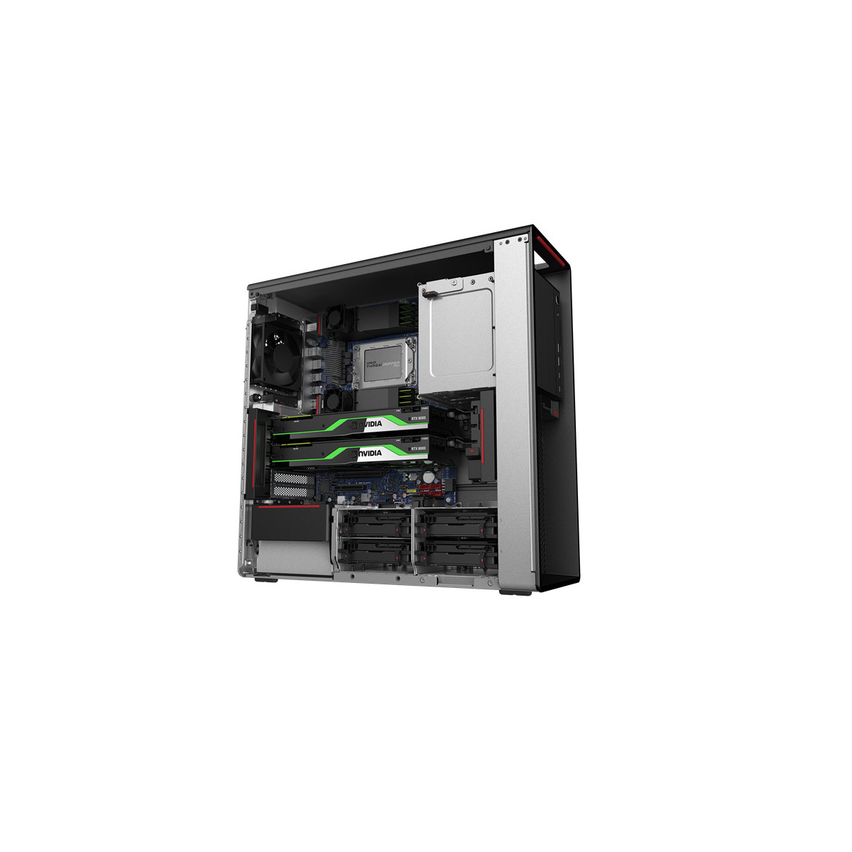 Lenovo ThinkStation P620. Frequenza del processore: 4,1 GHz, Famiglia processore: AMD Ryzen Threadripper PRO, Modello del processore: 5945WX. RAM installata: 64 GB, Tipo di RAM: DDR4-SDRAM, Velocità memoria: 3200 MHz. Capacità totale di archiviazione: 1000 GB, Supporto di memoria: SSD, Lettore di schede integrato. Sistema operativo incluso: Windows 11 Pro, Architettura sistema operativo: 64-bit. Alimentazione: 1000 W. Tipo di case: Tower. Tipo di prodotto: Stazione di lavoro. Colore del prodotto: Nero