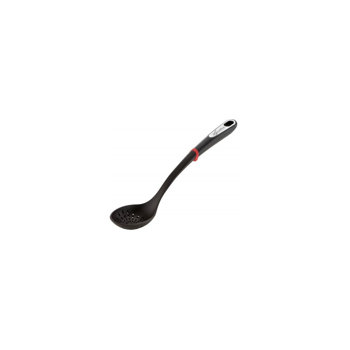 Il cucchiaione scolapasta è dotato del pratico anello in silicone, che permette di appoggiare lo strumento senza il rischio che scivoli all'interno del cibo.