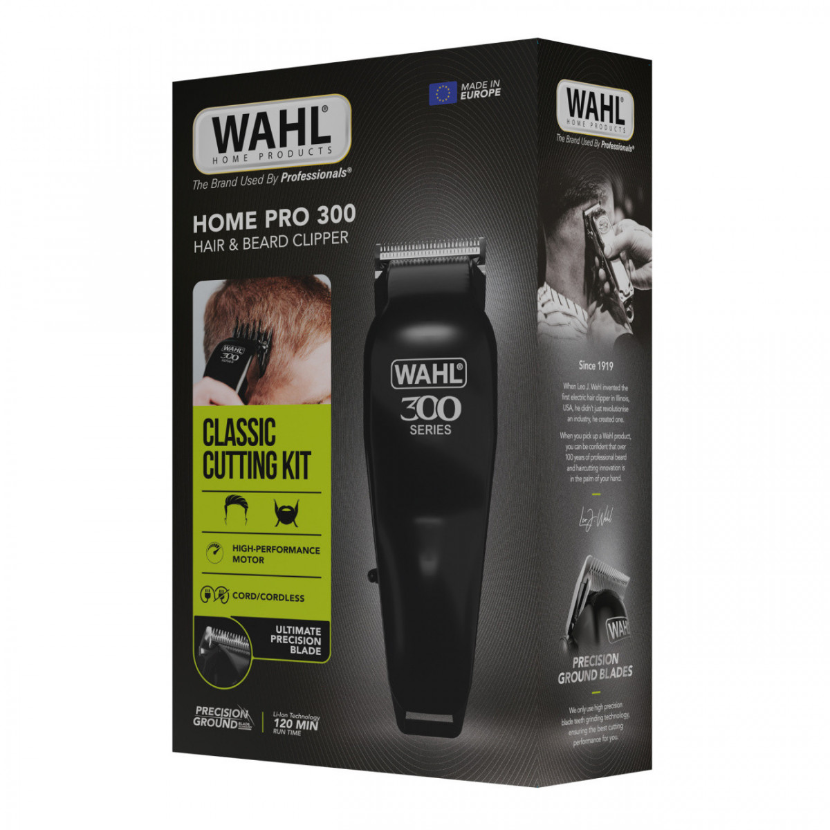 Wahl Home Pro 300 Cordless, Nero. Colore del prodotto: Nero, Forma: Altro, Lunghezza minima del taglio: 0,5 mm. Alimentazione: CA/Batteria, Tempo di funzionamento: 120 min, Tipo batteria: Batteria integrata. Peso: 539 g. Pettini: Barba, Testina. Larghezza imballo: 158 mm, Profondità imballo: 76 mm, Altezza imballo: 252 mm