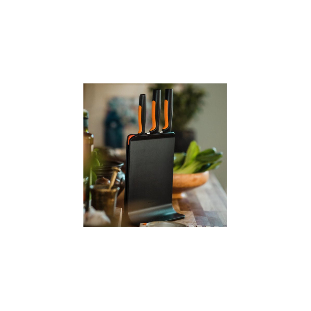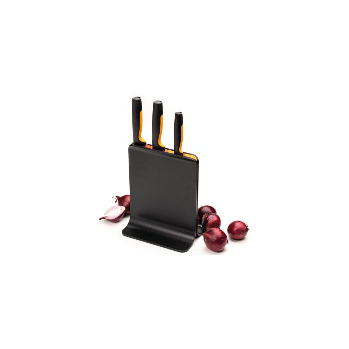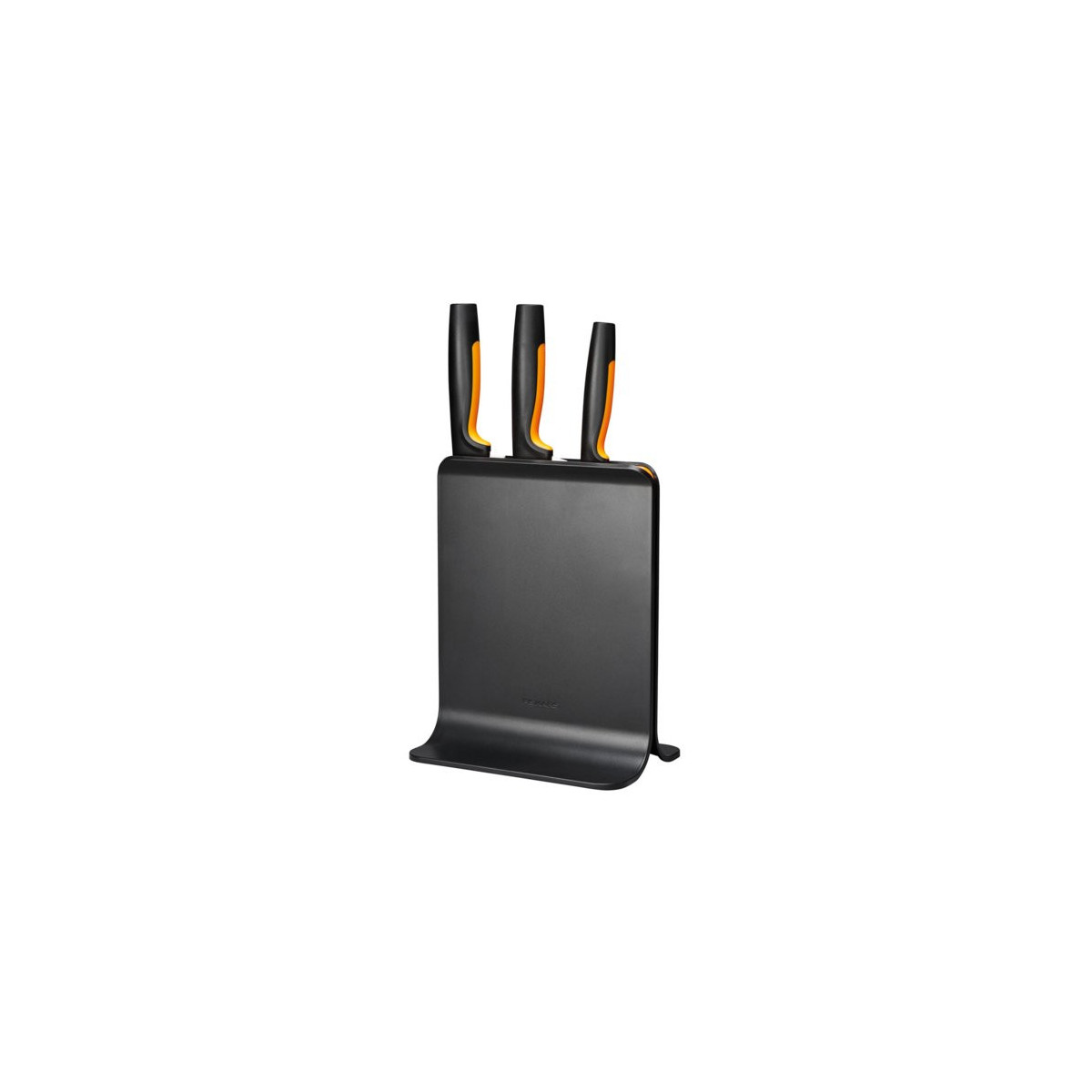 Fiskars Functional Form. Tipo di prodotto: Ceppo per coltelli con fessure, Materiale lama: Acciaio inossidabile, Materiali: Plastica, Acciaio inossidabile. Lunghezza della lama: 19,9 cm, Lunghezza della lama del coltello 2: 16 cm, Lunghezza della lama del coltello 3: 11 cm. Numero di prodotti inclusi: 4 pz