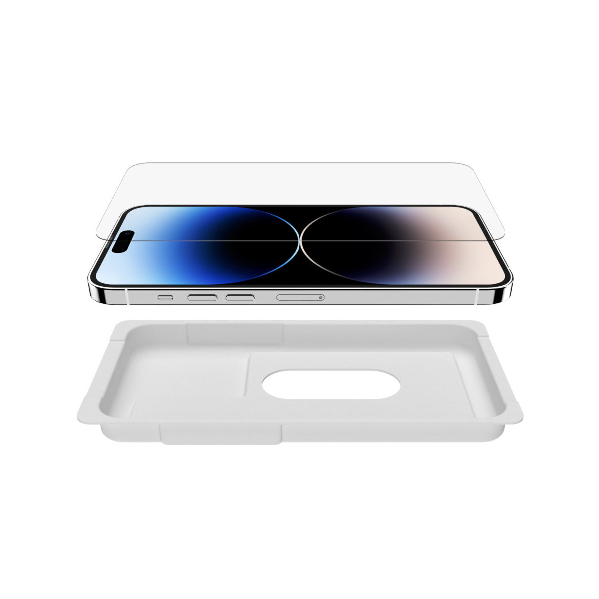 Belkin OVA104zz. Compatibilità marca: Apple, Compatibilità: iPhone 14 Pro Max, Funzioni di protezione: Antibatterico, Resistente agli urti, Antigraffio. Materiali: Vetro temperato, Colore del prodotto: Trasparente. Quantità per pacco: 1 pz
