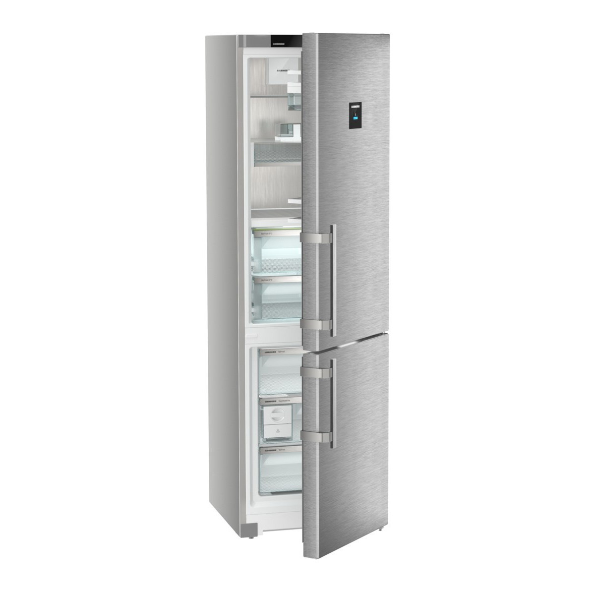 Liebherr CBNsdc 5753 Prime. Capacità netta totale: 362 L. Cerniera porta: Destra, Tipo di display: TFT. Classe climatica: SN-T, Emissione acustica: 33 dB. Capacità netta frigorifero: 259 L, Luce interna, Numero di ripiani frigorifero: 4, Numero di cassetti per verdura: 2. Capacità netta congelatore: 103 L, Capacità di congelamento: 10 kg/24h, No Frost (congelatore). Classe efficienza energetica: C, Consumo energetico annuo: 180 kWh. Colore del prodotto: Argento