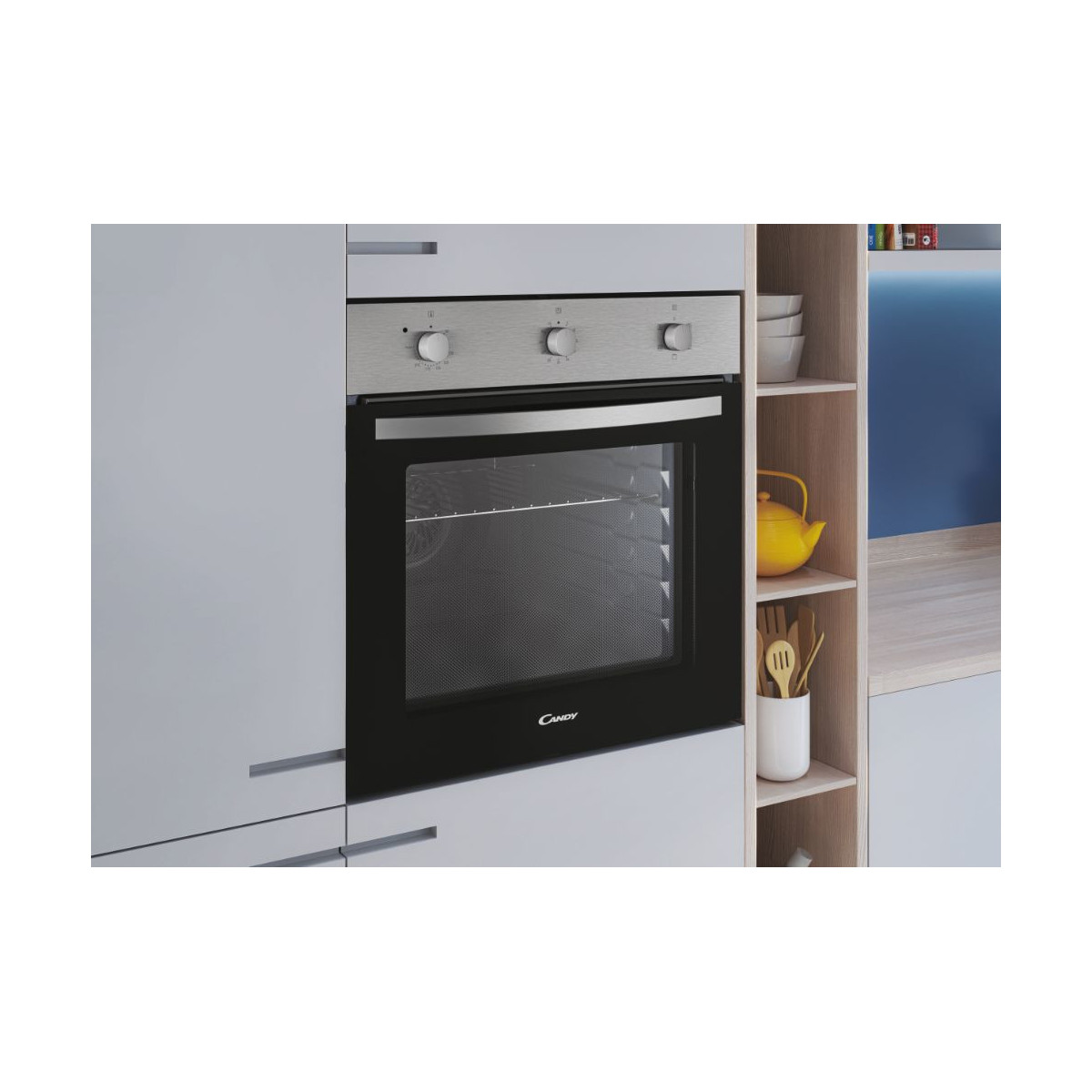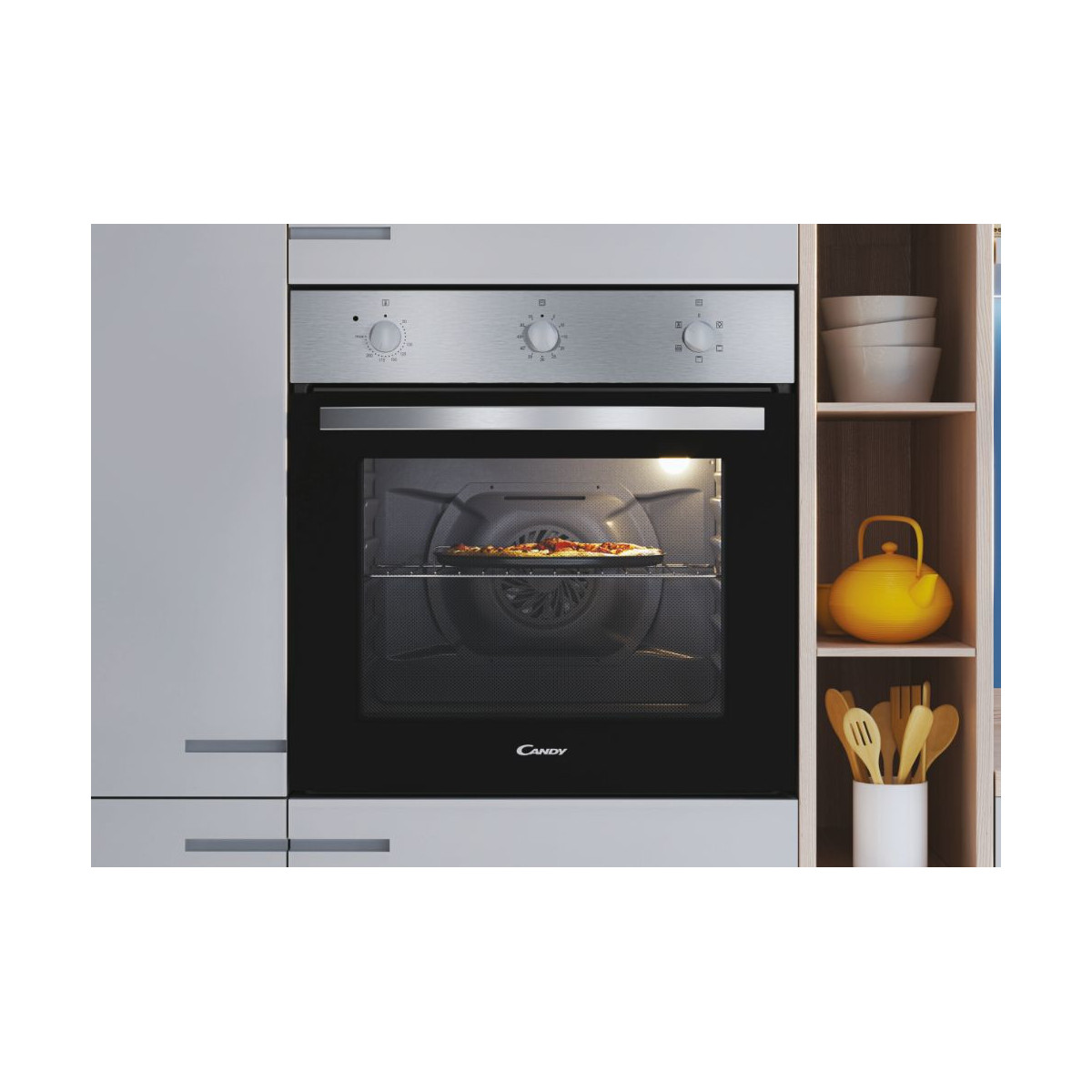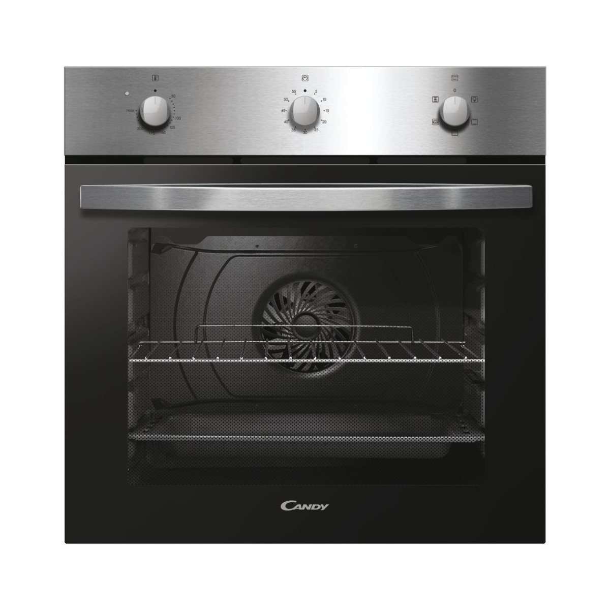 Candy Idea FIDC X502. Dimensione del forno: Media, Tipo di forno: Forno elettrico, Capacità interna forno totale: 65 L. Posizionamento dell'apparecchio: Da incasso, Colore del prodotto: Acciaio inossidabile, Tipo di controllo: Manopola. Classe efficienza energetica: A, Consumo energetico (convenzionale): 0,98 kWh, Consumo energetico (convezione forzata): 0,78 kWh. Quantità lampade: 1 lampada(e). Larghezza del compartimento: 56 cm, Profondità del compartimento: 56 cm, Altezza del compartimento: 58,5 cm