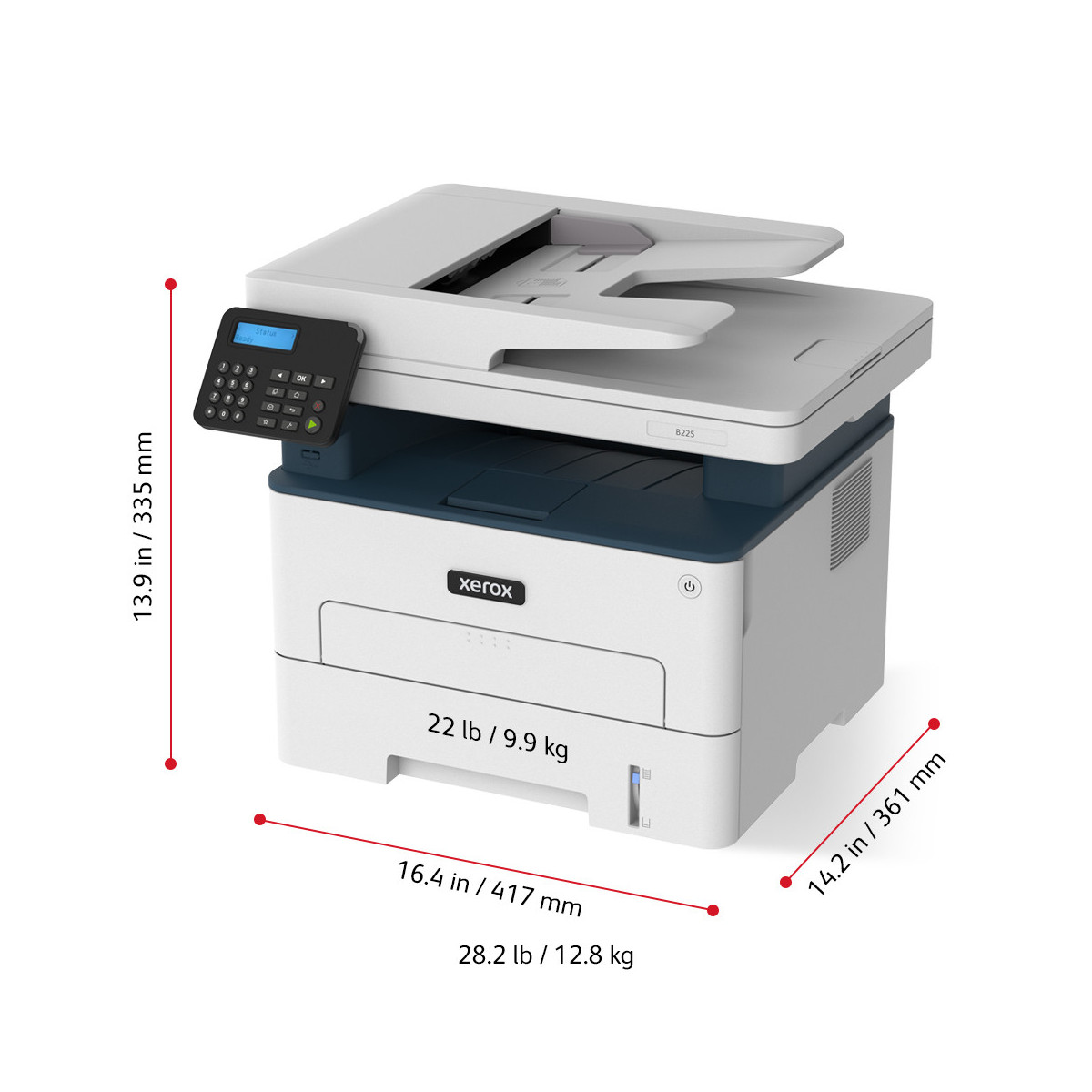 Xerox B225 A4 34 ppm Copia/Stampa/Scansione fronte/retro wireless PS3 PCL5e/6 ADF 2 vassoi Totale 251 fogli