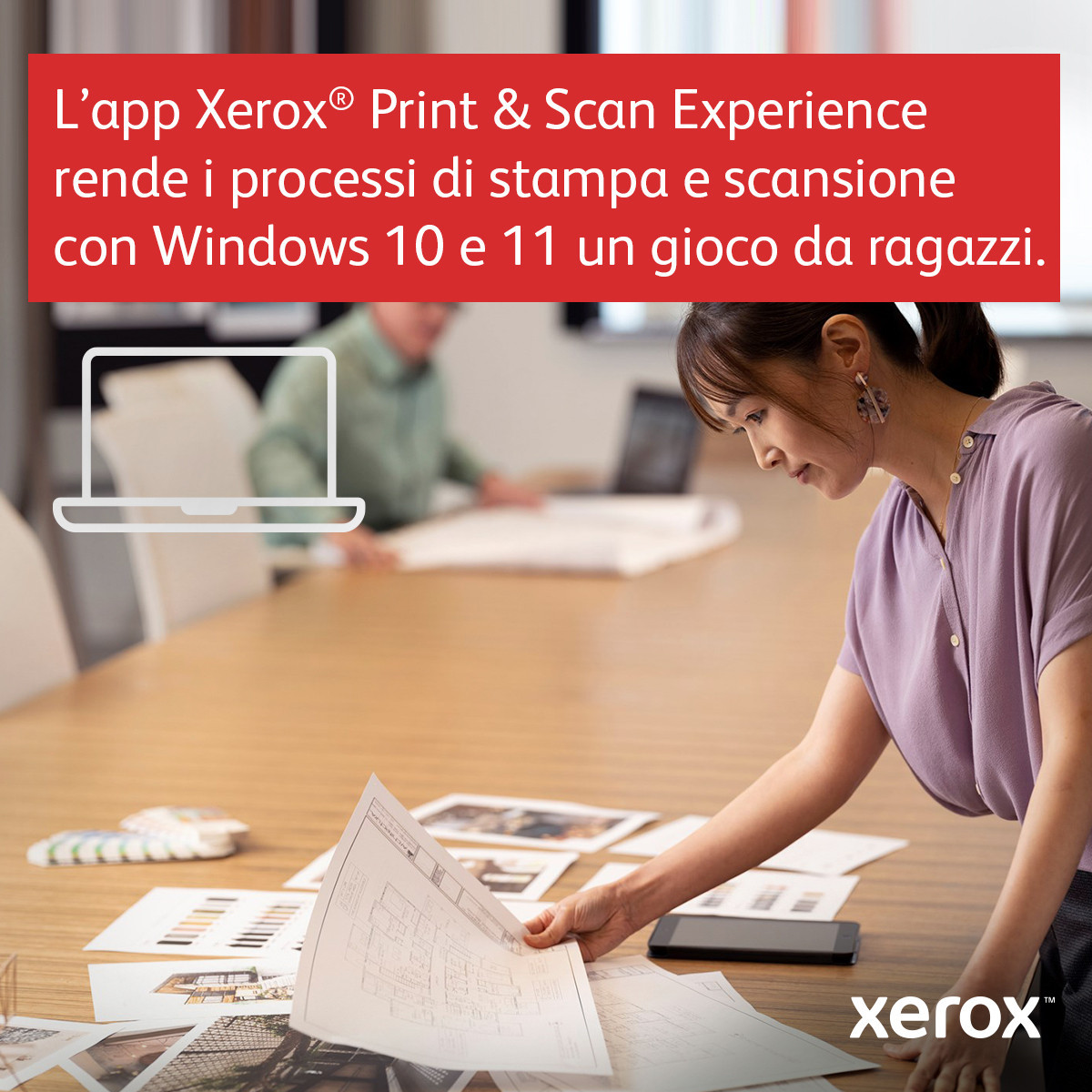 La stampante multifunzione Xerox B305 è dotata di Wi-Fi integrato con funzionalità Wi-Fi Direct ed è facile da configurare grazie al software Xerox® Smart Start per una operatività immediata. Stampate dai vostri dispositivi mobili con il supporto di stampa con Apple AirPrint, Mopria Print Service e Chromebook. Progettata per le piccole aziende che necessitano delle funzioni di stampa, copia e scansione. Con funzioni quali stampa fronte/retro automatica su carta Letter e Legal, un alimentatore automatico da 50 fogli, capacità carta standard di 250 fogli, un processore Dual Core da 1 GHz con 512 MB di memoria e volumi di stampa mensili fino a 2.500 pagine, la B305 è una macchina instancabile. Fate di più con la piattaforma Xerox Workflow Central opzionale, che consente di convertire i documenti in altre lingue, trasformare i messaggi scritti a mano in documenti di testo condivisibili, creare file audio di copie cartacee da ascoltare in movimento, oscurare automaticamente contenuti riservati e convertire le scansioni in applicazioni Microsoft Office. Xerox garantisce un efficiente servizio di riciclaggio delle cartucce toner.