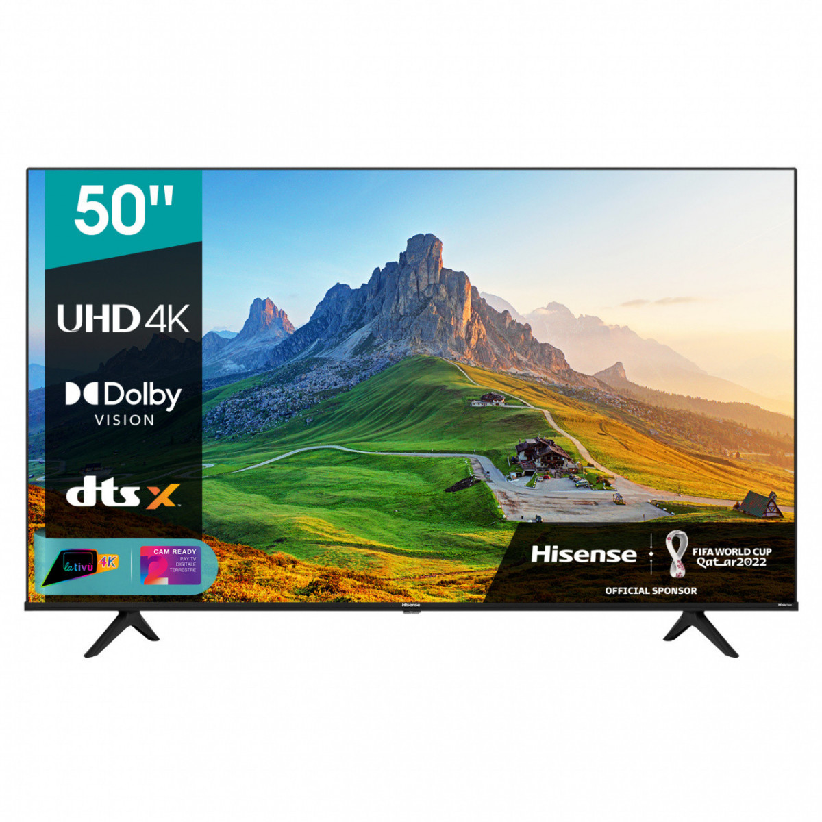 Hisense UHD 50" 4K 50A6CG. Dimensioni schermo: 127 cm (50"), Risoluzione del display: 3840 x 2160 Pixel, Tipologia HD: 4K Ultra HD, Tecnologia display: LED, Forma dello schermo: Piatto, Tipo di retroilluminazione LED: Direct-LED. Smart TV. Tecnologia di interpolazione del movimento: PMI (Picture Mastering Index) 1700, Luminosità schermo: 300 cd/m², Tempo di risposta: 8 ms, Rapporto di contrasto: 3500:1. Formato del segnale digitale: DVB-C, DVB-S, DVB-S2, DVB-T, DVB-T2. Wi-Fi, Collegamento ethernet LAN. Colore del prodotto: Nero