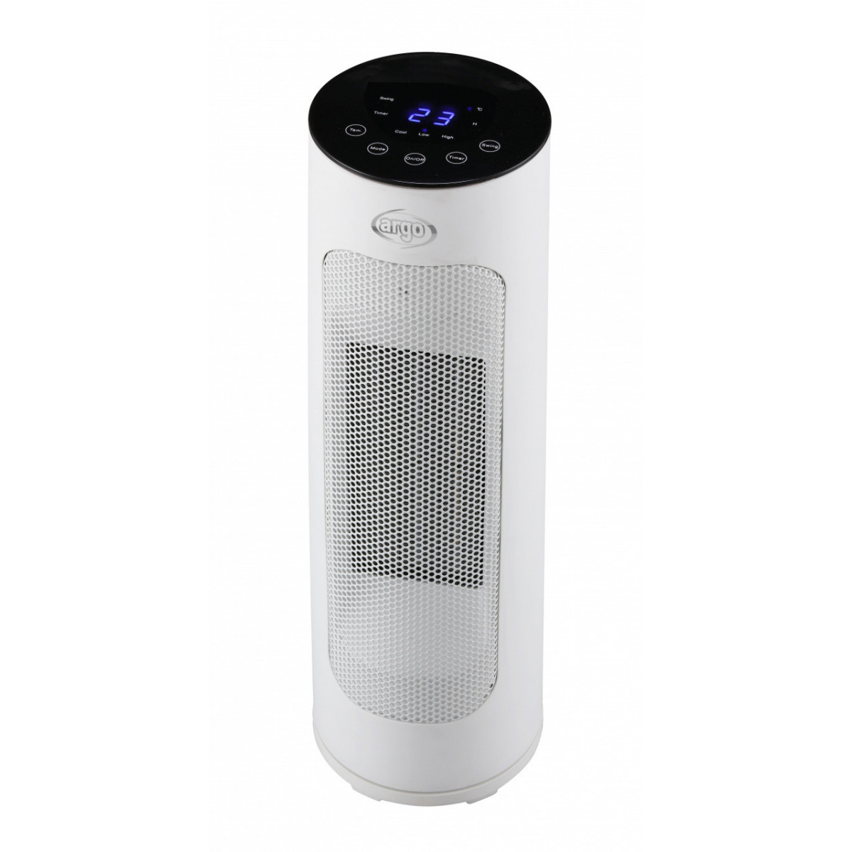 Argoclima Homer. Tipo: Riscaldatore ambiente elettrico con ventilatore, Tipologia elemento riscaldante: Ceramica, Campo di oscillazione: 60°. Adatto per: Interno, Opzioni di posizionamento: Pavimento, Tavolo, Colore del prodotto: Nero, Bianco. Potenza termica: 2000 W, Potenza termica (min): 1300 W, Adatto per stanze fino a: 60 m³. Tensione di ingresso AC: 220 - 240 V, Frequenza di ingresso AC: 50/60 Hz. Larghezza: 133 mm, Profondità: 133 mm, Altezza: 424 mm