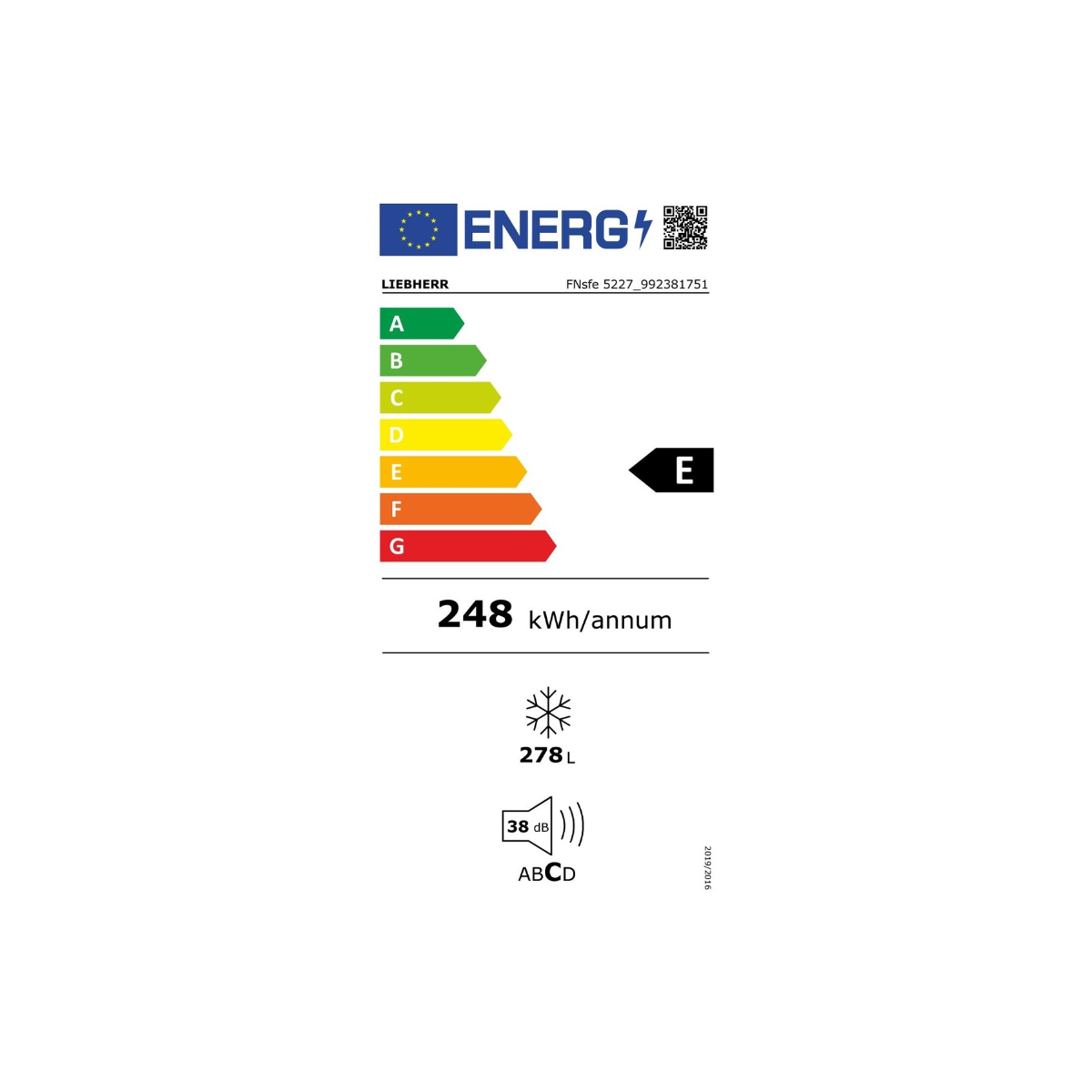 Liebherr FNsfe 5227 - Congelatore Verticale da Libera Installazione, NoFrost, 278 Litri, Classe E, 185,5x59,7x67,5 cm