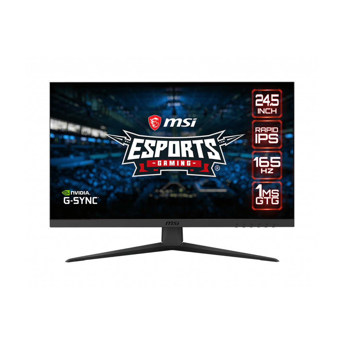 MSI Optix G251F. Dimensioni schermo: 62,2 cm (24.5"), Risoluzione del display: 1920 x 1080 Pixel, Tipologia HD: Full HD, Tecnologia display: LED, Tempo di risposta: 1 ms, Rapporto d'aspetto nativo: 16:9, Angolo di visualizzazione (orizzontale): 178°, Angolo di visualizzazione (verticale): 178°. Montaggio standard VESA. Colore del prodotto: Nero