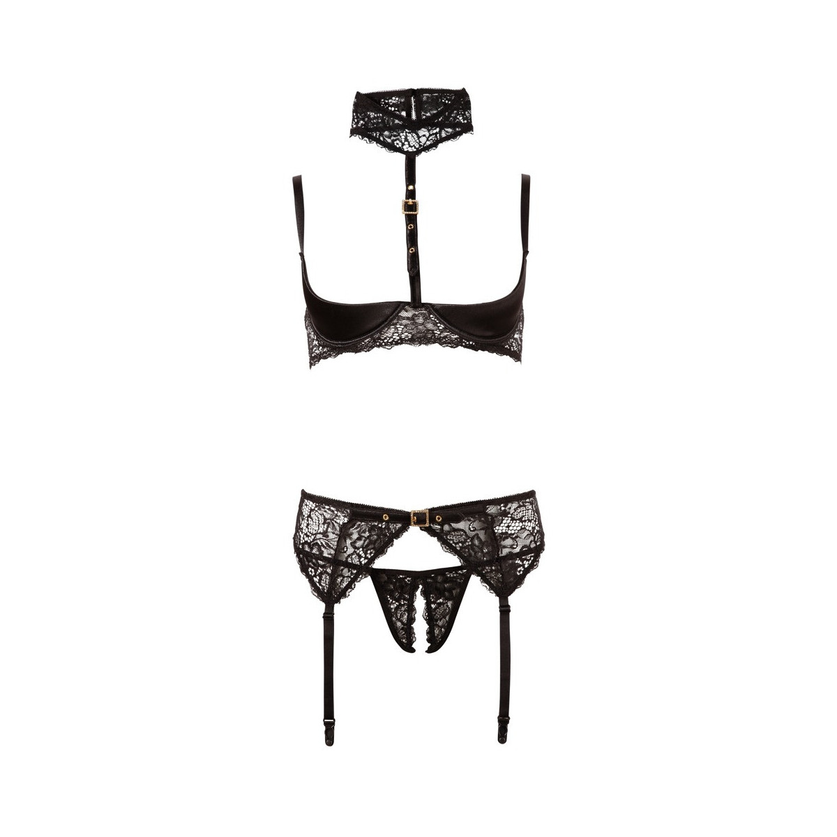 Abierta Fina Shelf Bra Set - Completino Intimo Nero, Seno Scoperto, Taglia 80B/M