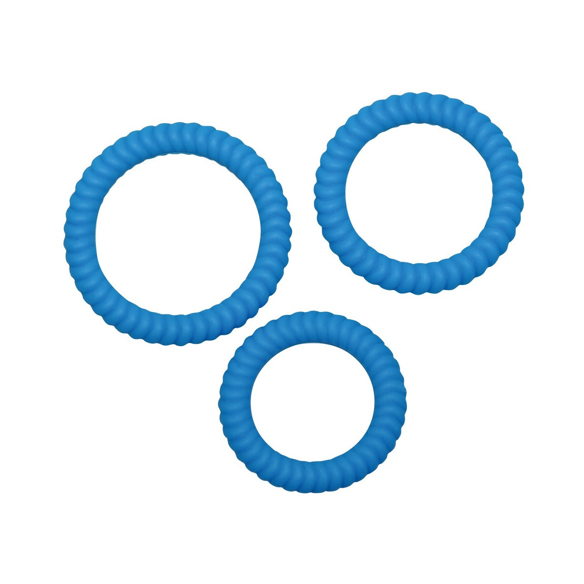 Se volete regalare alla vostra partner un paio di ore particolarmente piacevoli, dovreste provare assolutamente un anello per pene. Da una parte si rafforza e prolunga enormemente la vostra erezione grazie alla super-aderenza. Dallâaltra voi e la vostra amata avrete stimolazioni aggiuntive. Set composto da tre anelli per pene scanalati di diverse dimensioni - utilizzabili singolarmente o in combinazione. Ã ca. 2,6 cm, 3 cm e 3,5 cm. Blu. Materiale: silicone.