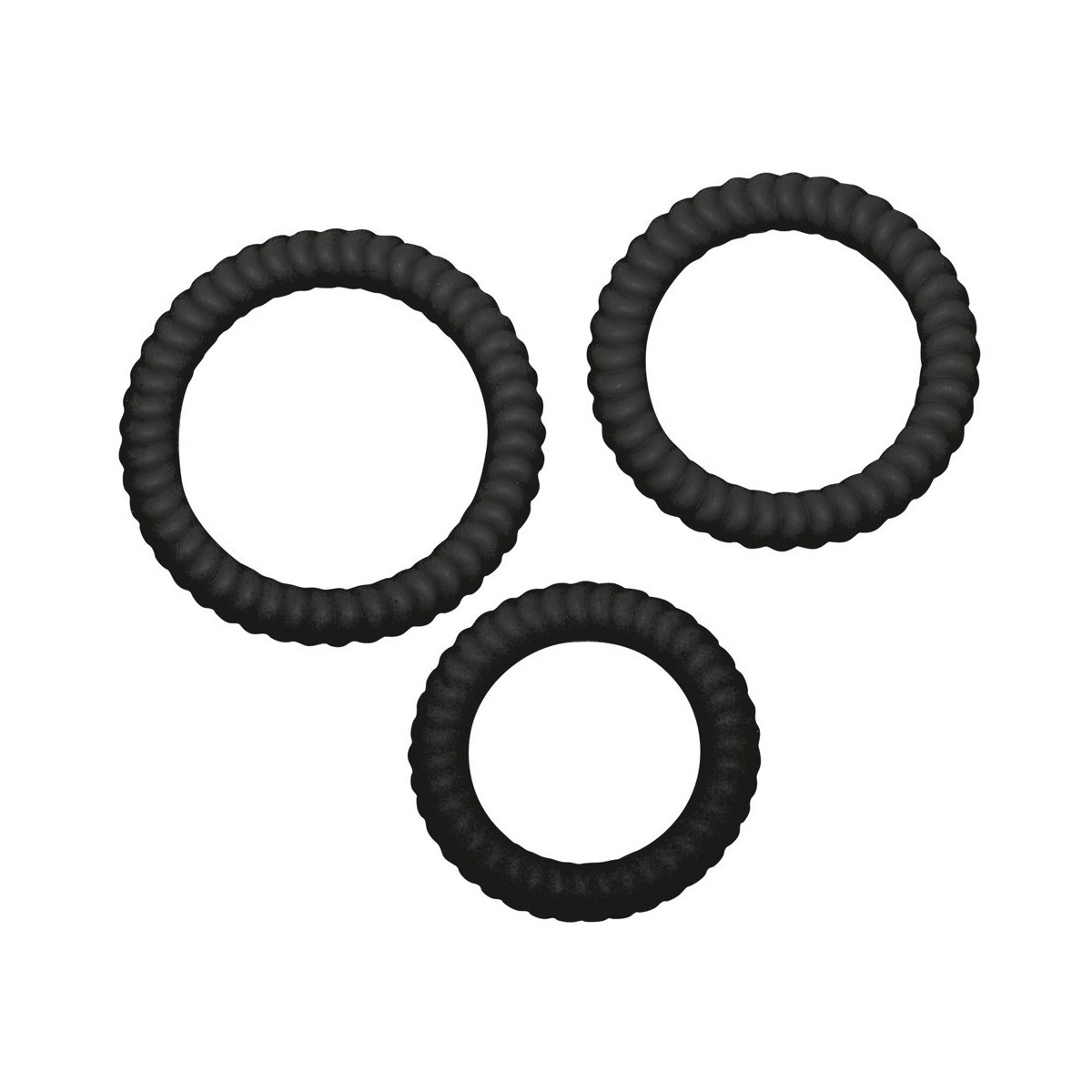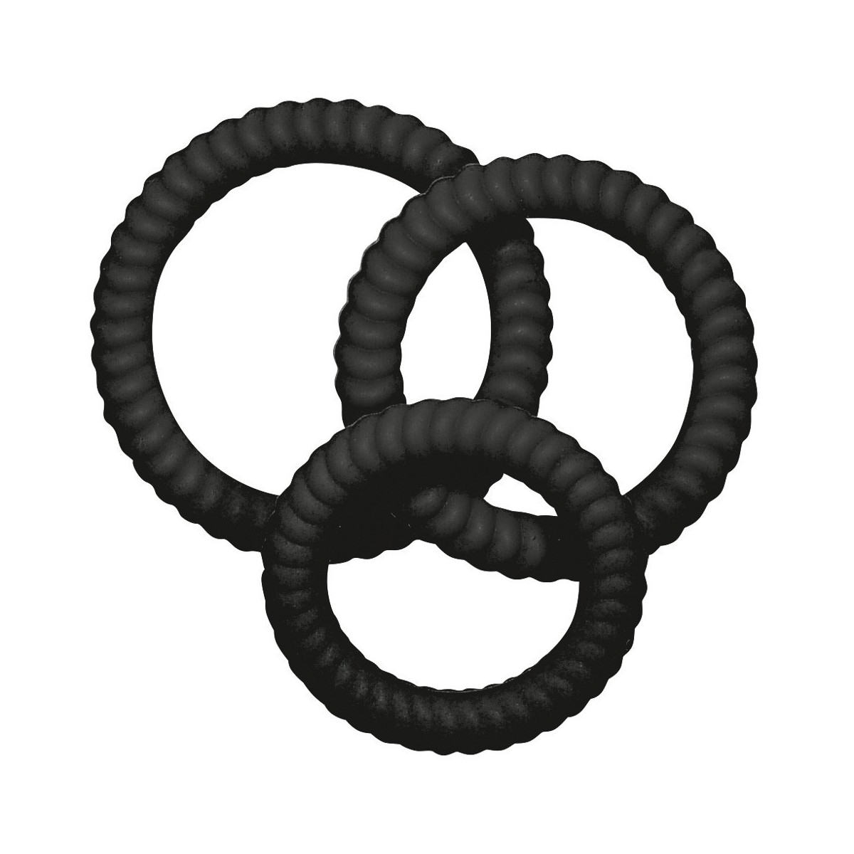 Se volete regalare alla vostra partner un paio di ore particolarmente piacevoli, dovreste provare assolutamente un anello per pene. Da una parte si rafforza e prolunga enormemente la vostra erezione grazie alla super-aderenza. Dallâaltra voi e la vostra amata avrete stimolazioni aggiuntive. Set composto da tre anelli per pene scanalati di diverse dimensioni - utilizzabili singolarmente o in combinazione. Ã ca. 2,6 cm, 3 cm e 3,5 cm. Nero. Materiale: silicone.
