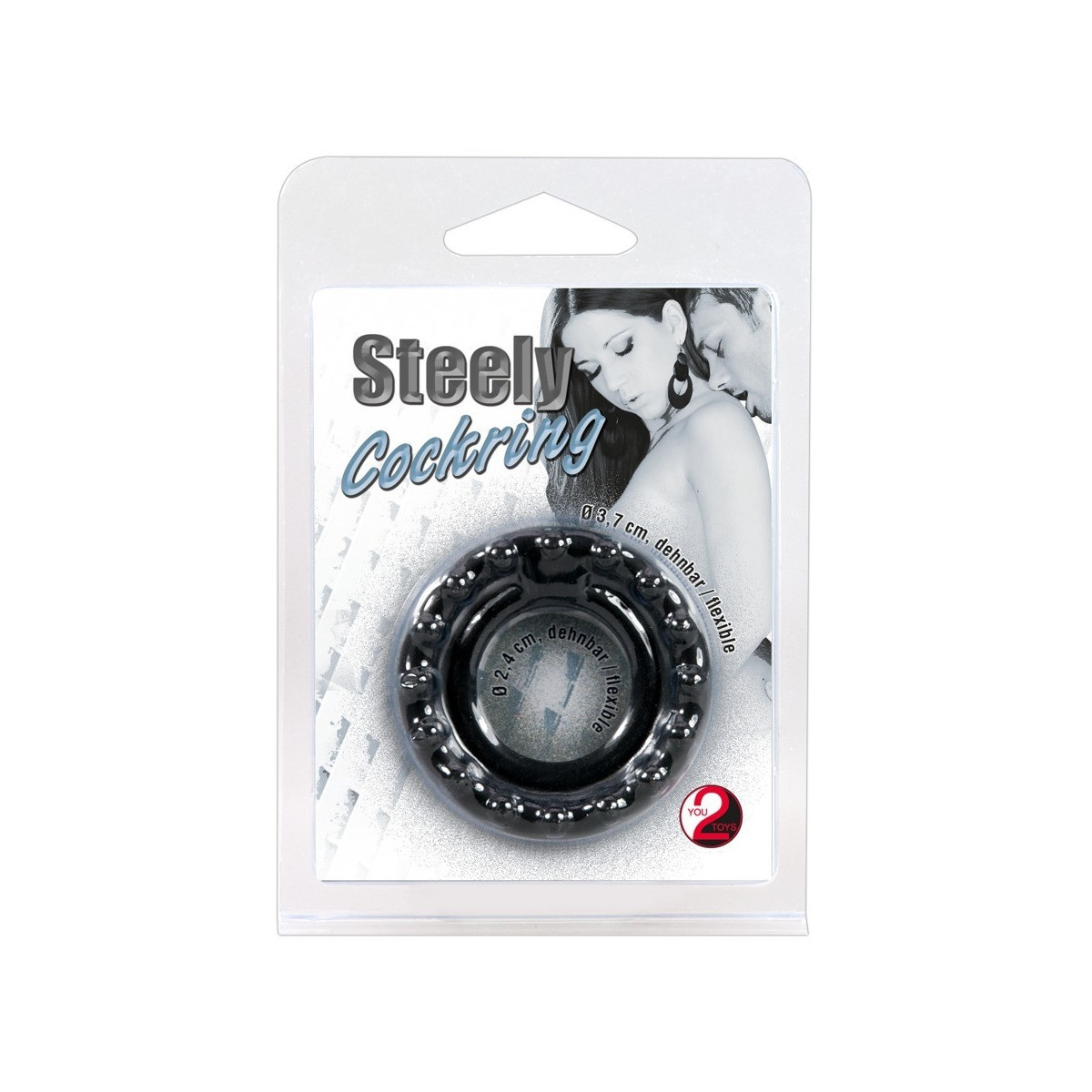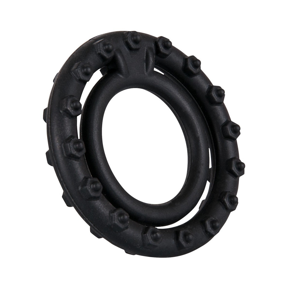 Il pene è strettamente racchiuso dall'anello del pene nubbed, mentre il secondo anello racchiude strettamente i testicoli. Gli anelli elastici sono collegati con una barra di stimolo. Anello à 2,4 e 3,7 cm. Nero. Materiale: silicone.