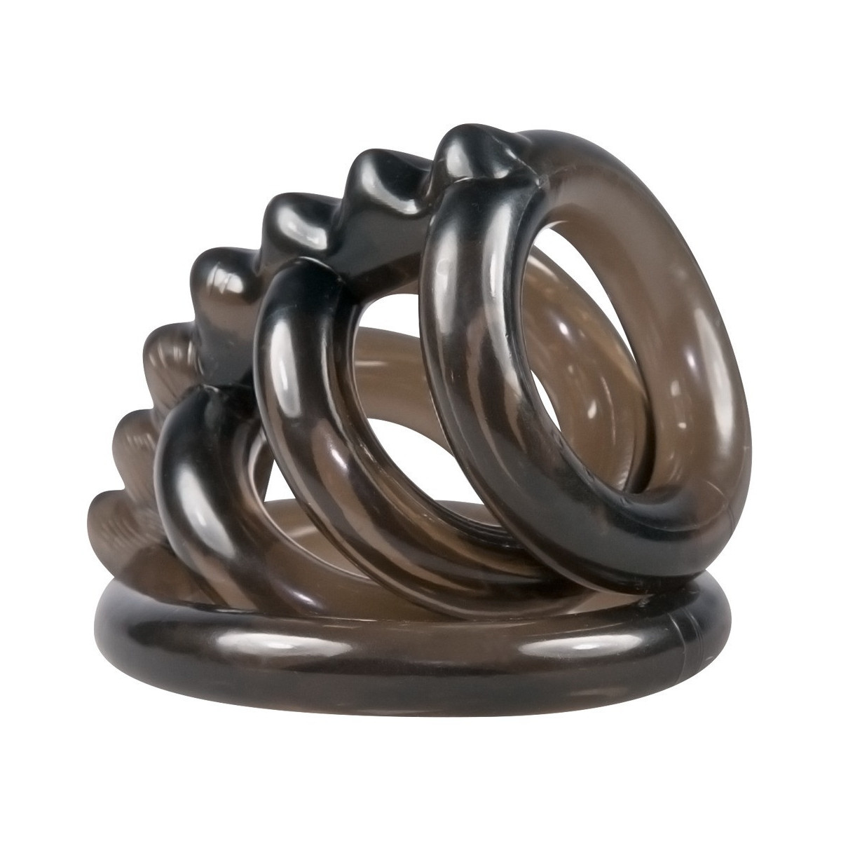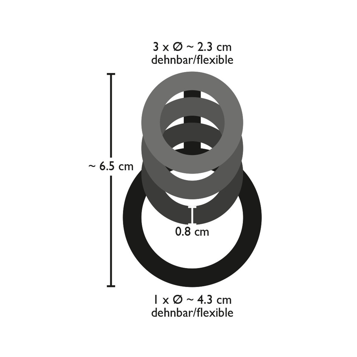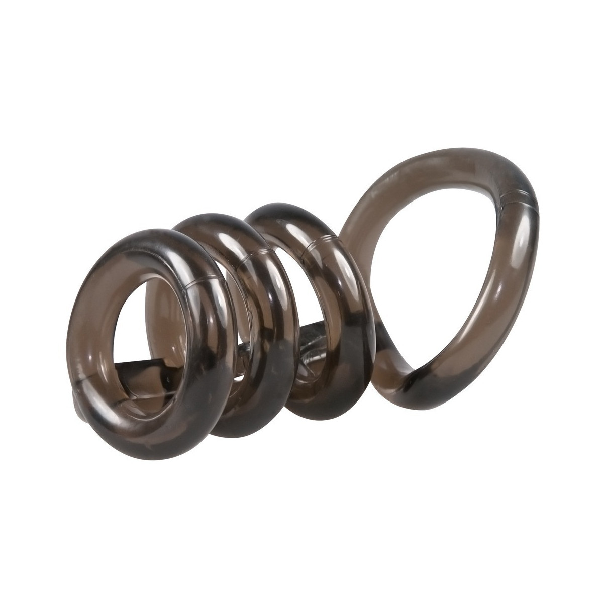 Spessore degli anelli 8 mm ciascuno. Anello à 3 x 2,3 cm e 1 x 4,3 cm. Lunghezza totale 6,5 cm. Nero fumo. Materiale: TPE.
