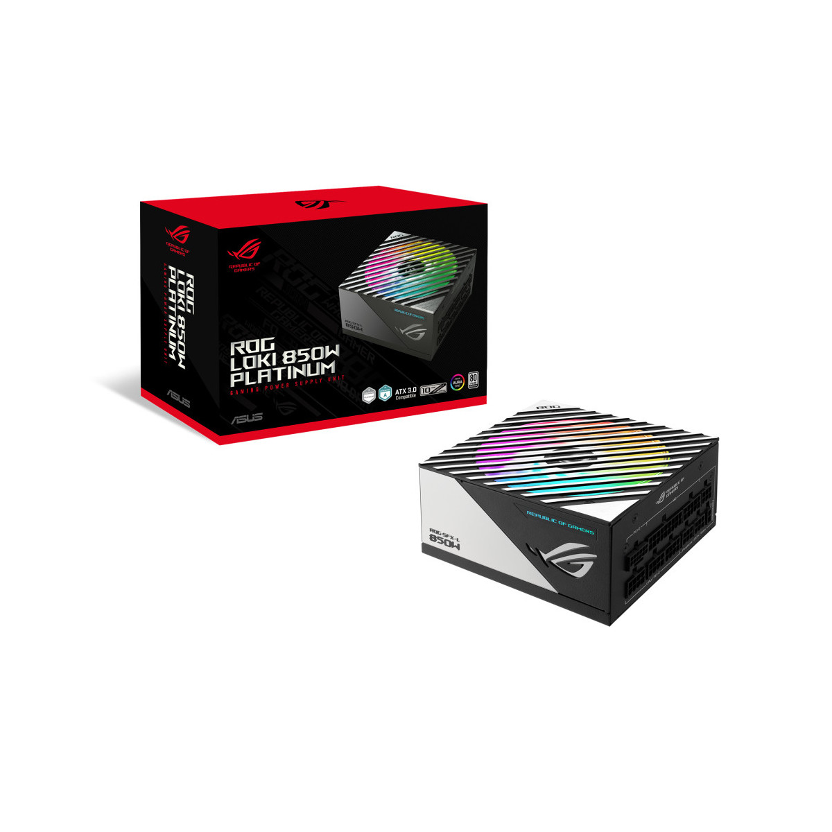 ASUS ROG Loki SFX-L 850W Platinum. Potenza totale: 850 W, Tensione di ingresso AC: 100 - 240 V, Potenza combinata (+3.3V): 110 W. Connettore scheda madre: 24-pin ATX. Utilizzo: PC, Fattore di forma dell'unità di alimentazione (PSU): SFX, Certificazione 80 PLUS: 80 PLUS Platinum. Colore del prodotto: Nero, Argento, Diametro del ventilatore: 12 cm, Numero di ventole: 1 ventola(e). Larghezza: 125 mm, Profondità: 125 mm, Altezza: 63,5 mm