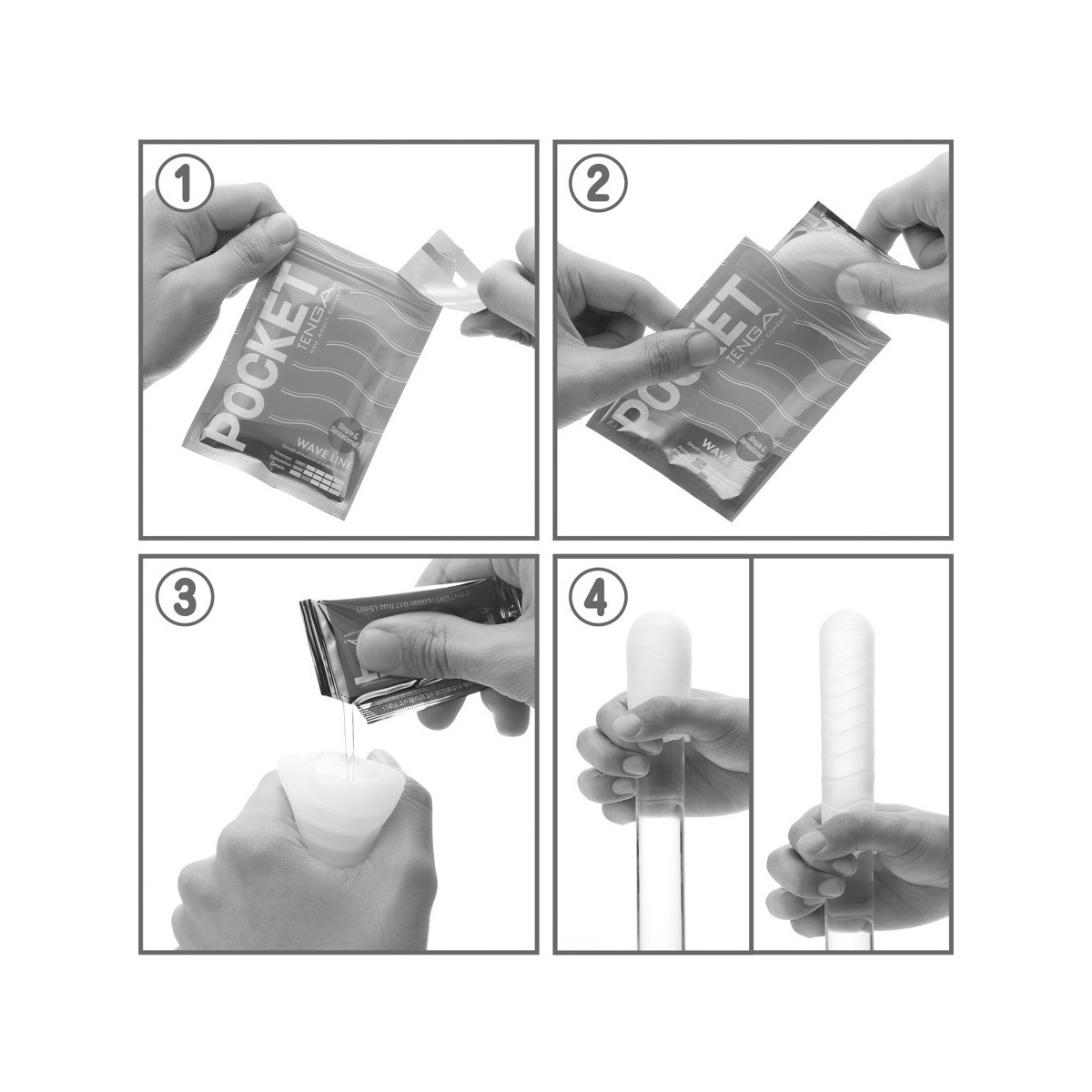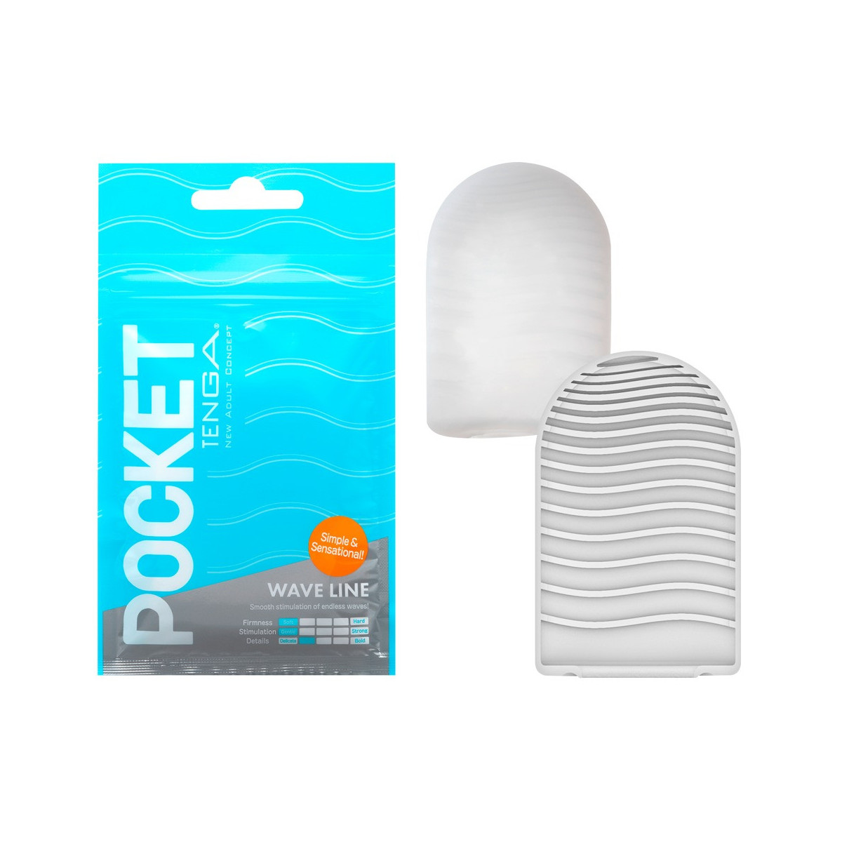 Masturbatore usa e getta Pocket Wave Line di Tenga con struttura di stimolazione a onde scanalate all'interno. Discretamente confezionato in un sacchetto tascabile - perfetto per gli spostamenti. Il manicotto masturbatore ultra flessibile ed estremamente sottile è usato insieme durante il handjob con il lubrificante allegato. Il manicotto altamente estensibile si adatta a tutte le dimensioni del pene.