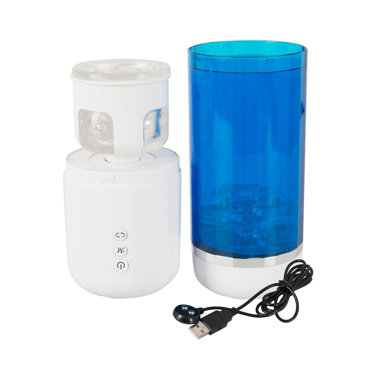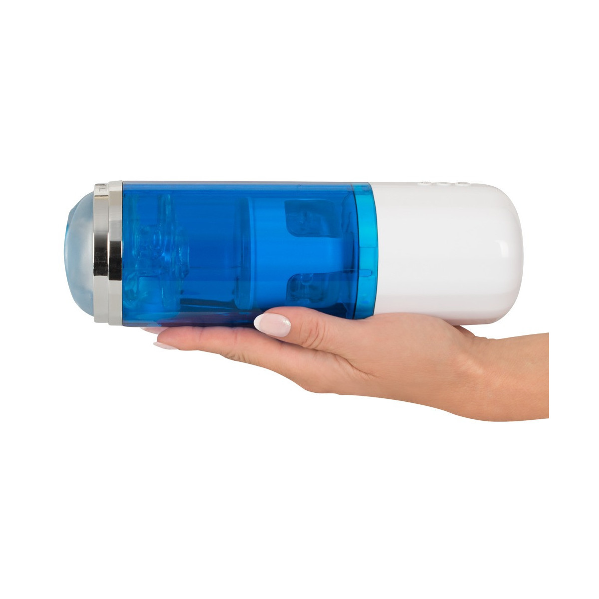 Masturbatore ricaricabile a 3 funzioni di You2Toys che combina rotazione e spinta nella parte inferiore e vibrazione nella parte superiore. L'asta del pene viene massaggiata intensamente e la punta del pene viene coccolata con vibrazioni allo stesso tempo. 10 modalità di vibrazione e 5 modalità di rotazione in entrambe le direzioni, così come la funzione di spinta di 1 cm, forniscono una piacevole varietà e possono essere comodamente controllate separatamente al tocco di un pulsante direttamente sul giocattolo. Le due maniche interne sono dotate di innumerevoli nubi morbide per il massaggio e possono essere rimosse per una facile pulizia. Il masturbatore a forma di vagina può essere conservato (polvere) in modo sicuro e discreto con il tappo di protezione incluso. Cavo di ricarica USB incluso.