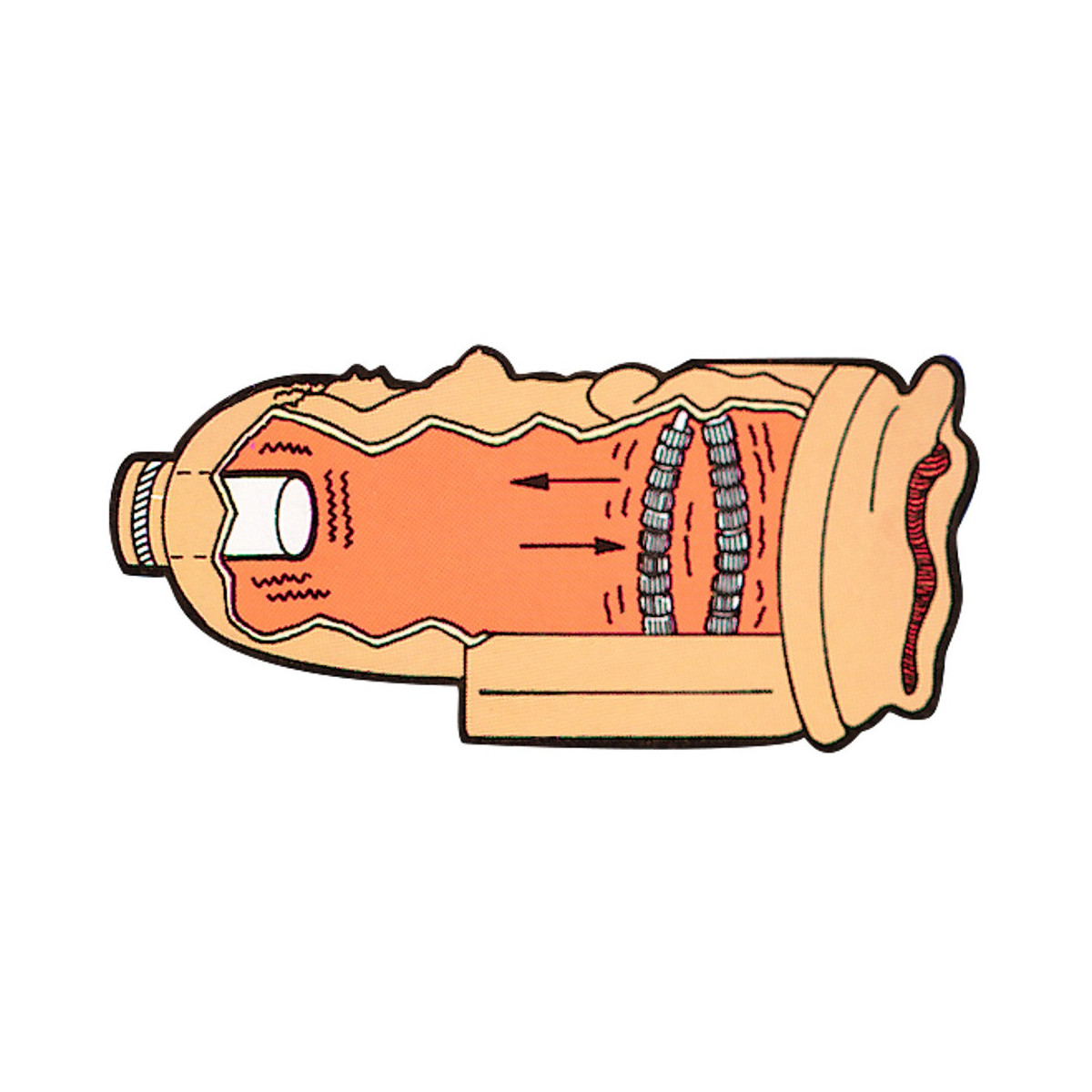 Grotta del piacere con vibrazione e funzione di spinta - controllabili separamente a regolazione continua. Ca. 16 cm di profondità, Ø 3,5 cm. Materiale: PVC.