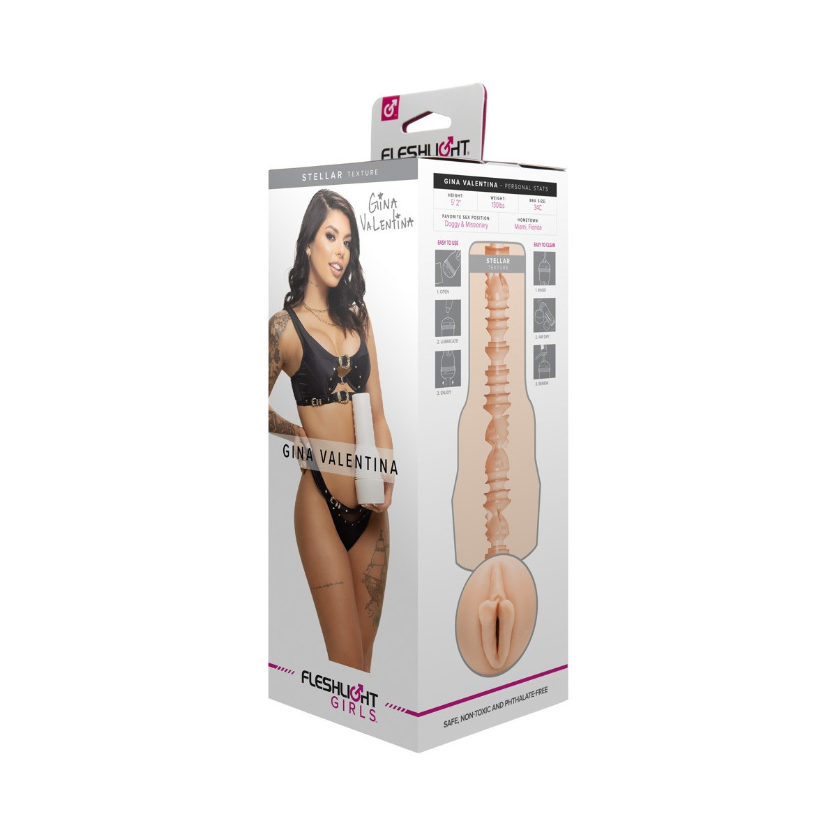 Grip masturbatore Gina Valentina Stellar di Fleshlight in discreto look torcia con originale apertura della vagina modellata della star erotica Gina Valentina. E anche l'interno molto diversificato con diversi diametri si avvicina molto alla vagina stretta di Gina e assicura un massaggio intenso ed efficace per l'orgasmo durante l'handjob. Il manicotto interno fatto di materiale super-morbido come la pelle ha l'autografo di Gina accanto all'apertura e può essere facilmente rimosso dal masturbatore per la pulizia.