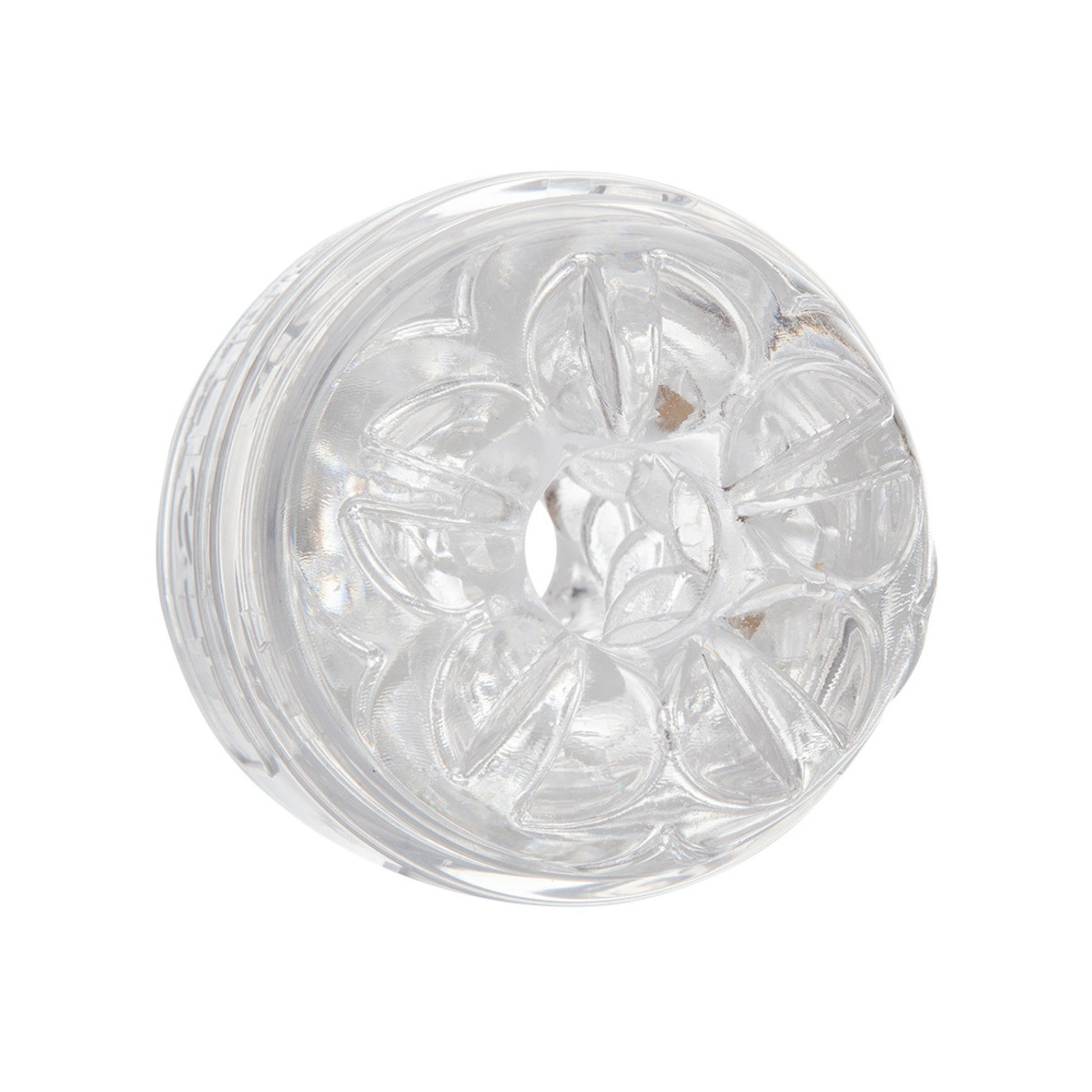 Masturbatore trasparente in materiale Superskin con interno strutturato. Aperto su entrambi i lati. Solo la metà delle dimensioni degli altri masturbatori Fleshlight: 8,8 cm di lunghezza, à 1,8 cm, estensibile. Materiale: Composizione di polimeri e oli minerali. Compresa la scatola trasparente.