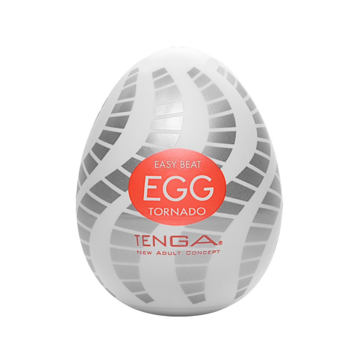Masturbatore compatto monouso Egg Tornado di Tenga con eccitante struttura di irritazione a spirale all'interno. Il manicotto masturbatore ultra-flessibile è all'interno del guscio a forma di uovo e viene utilizzato insieme durante l'handjob con il lubrificante allegato.