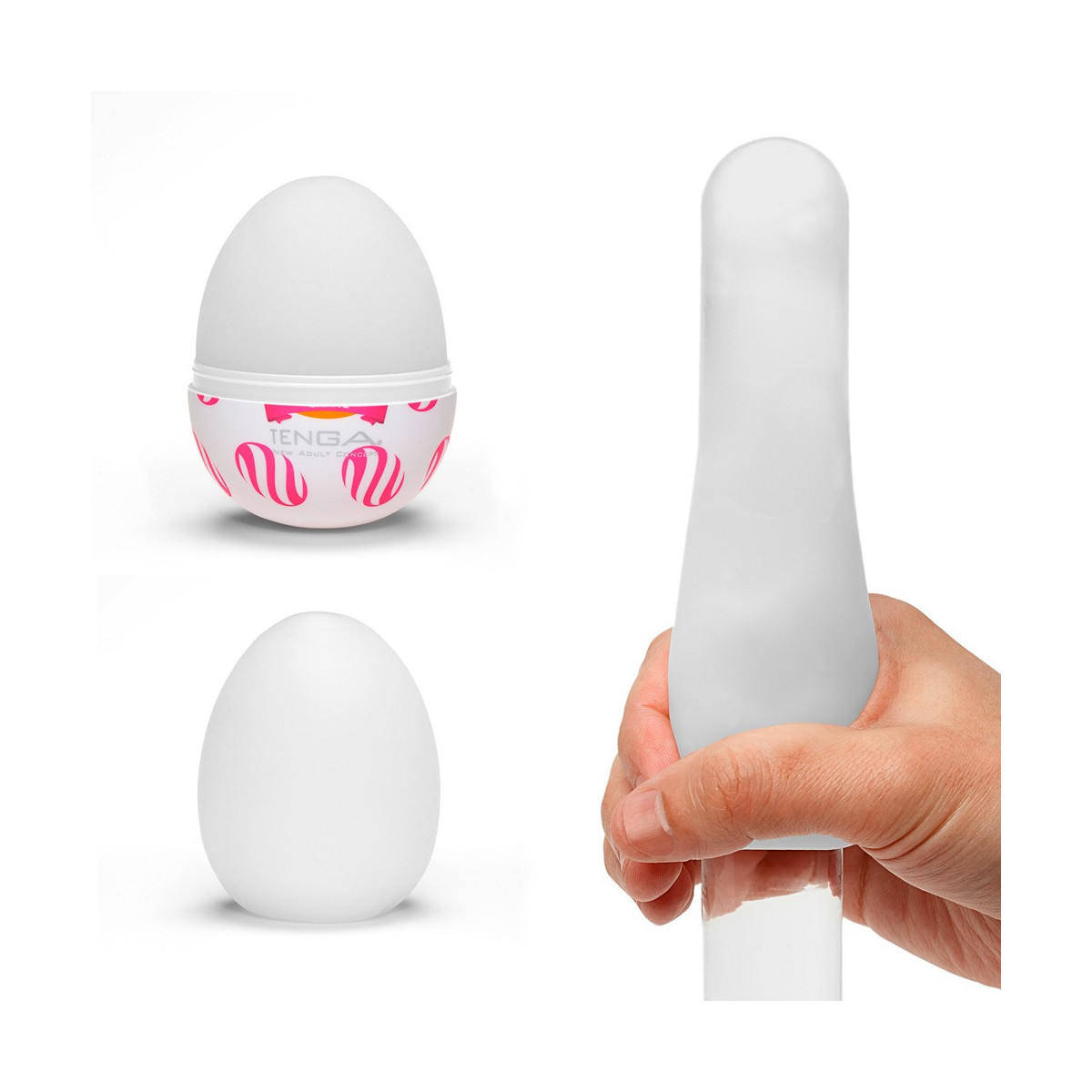 Masturbatore compatto usa e getta Egg Curl di Tenga con struttura irritante a spirale a sfere all'interno. Il manicotto masturbatore ultra flessibile è all'interno del guscio a forma di uovo e viene utilizzato insieme durante l'handjob con il lubrificante incluso.