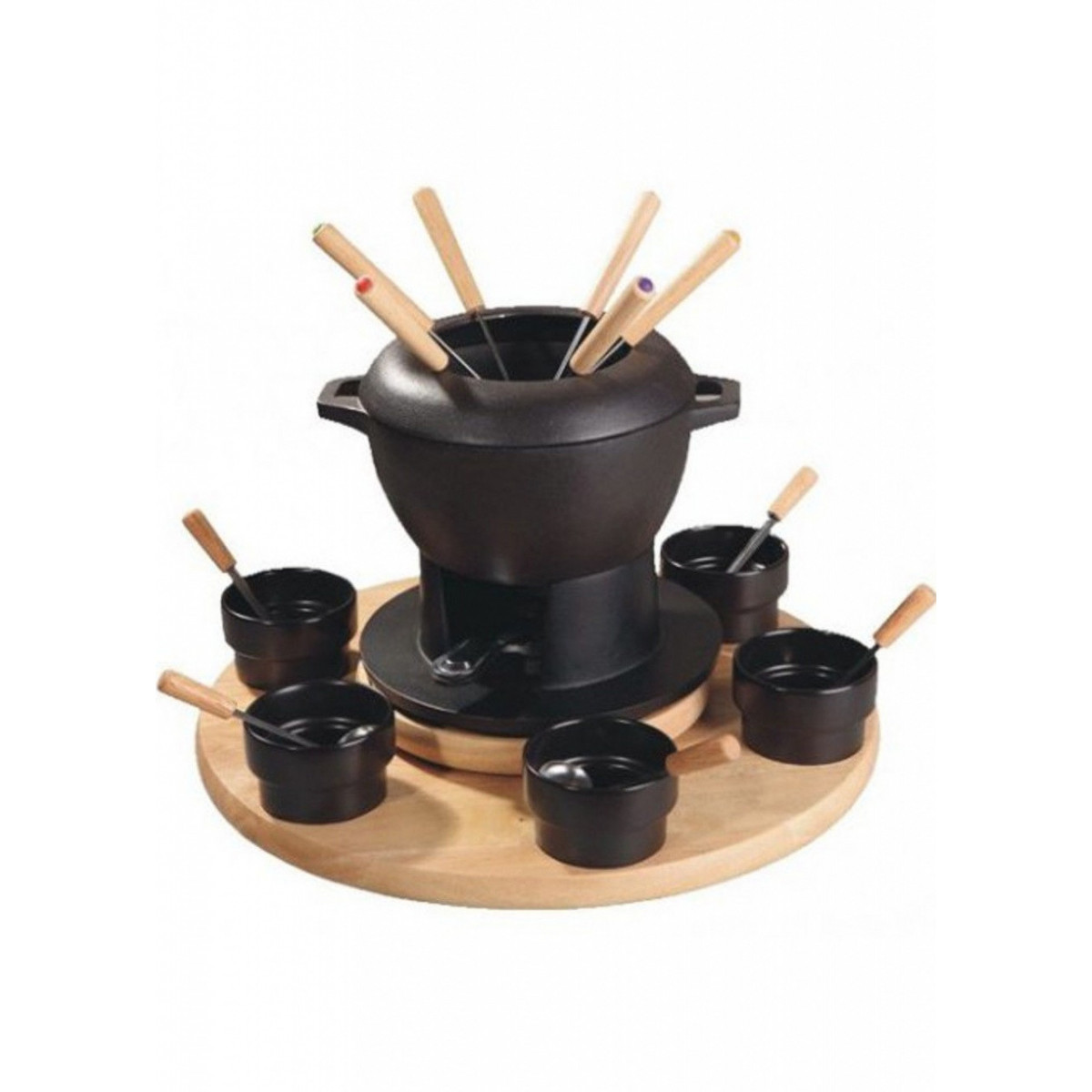 Eva 070351 - Fonduta in Ghisa, Base in Legno di Betulla, 24 PZ