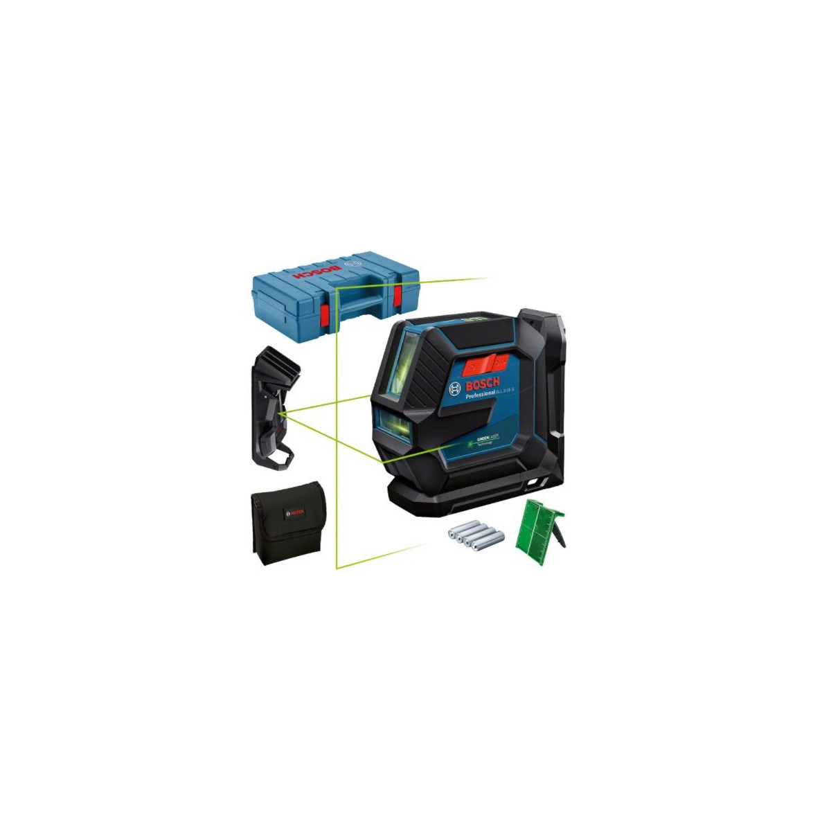 Bosch GLL 2-15 G - Livella Laser a Linee, 4 Batterie 1,5V LR6, Base Rotante, Pannello di Mira e con Clip di Fissaggio DK 10