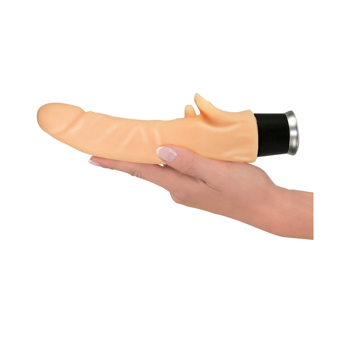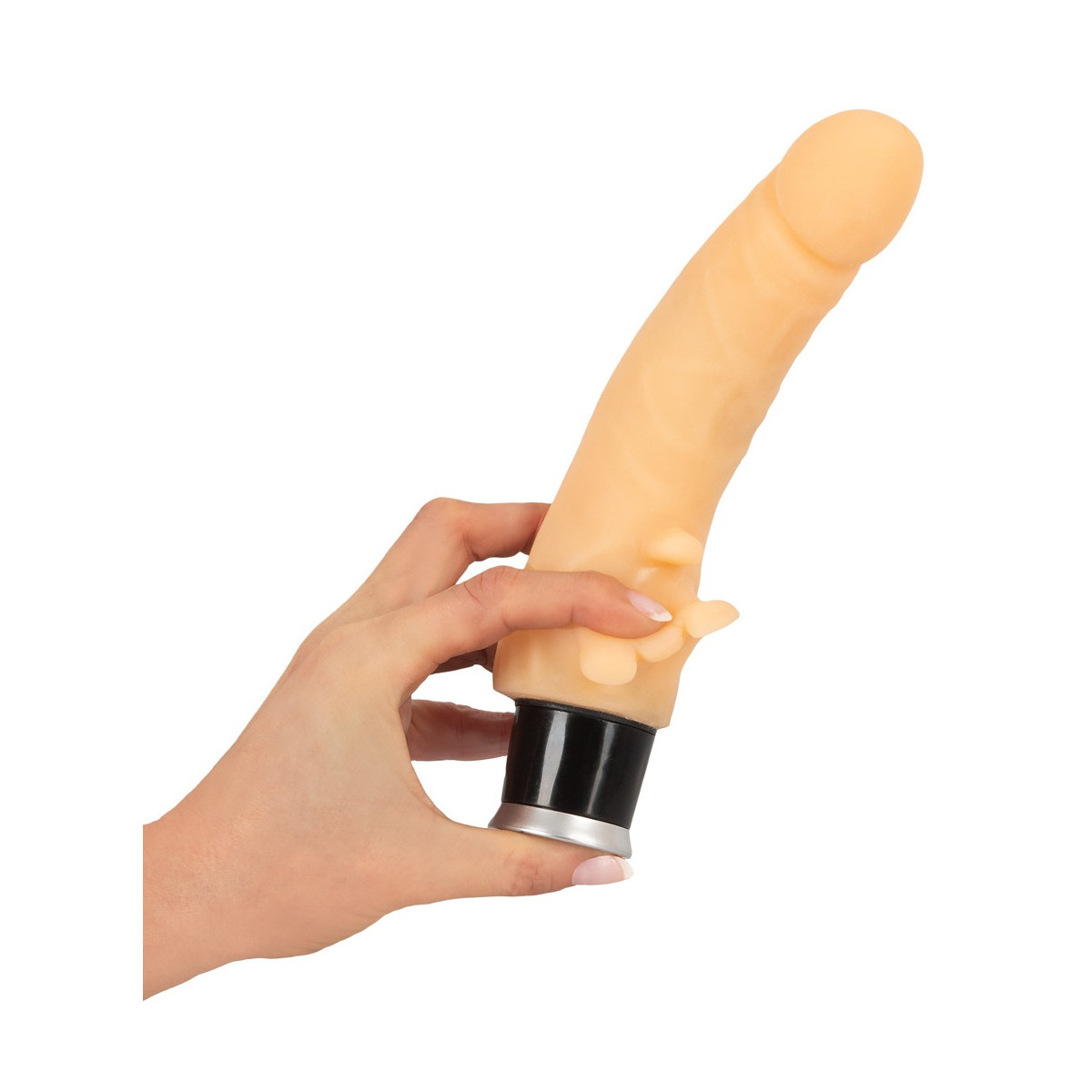 Vibratore con âfiammeâ per clitoride. Nel sensazionale materiale âNature Skinâ che si avvicina incredibilmente alla pelle vera! Ca. 20 cm di lunghezza, Ã 3,5 cm. A regolazione continua. Materiale: TPR. Incluso lubrificante e talco.