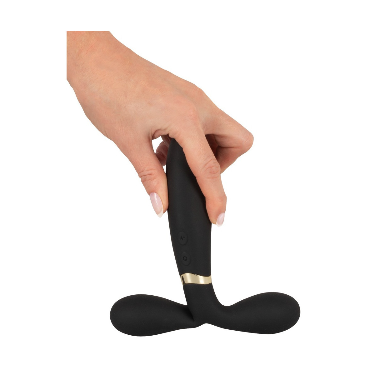 Vibratore a 3 motori a doppia faccia di Couples Choice con 2 bracci molto flessibili e albero fisso scanalato per variegati preliminari e sesso sul e nel corpo. Non meno di 3 motori (uno per braccio, uno nell'albero) forniscono vibrazioni extra forti che possono essere controllate separatamente in 9 modalità e comodamente al tocco di un pulsante direttamente sul giocattolo. Il sofisticato vibratore è fatto di materiale in silicone morbido tutto intorno e fornisce una sensazione molto piacevole sulla pelle durante il gioco e le coccole. Ricaricabile - cavo di ricarica USB incluso.