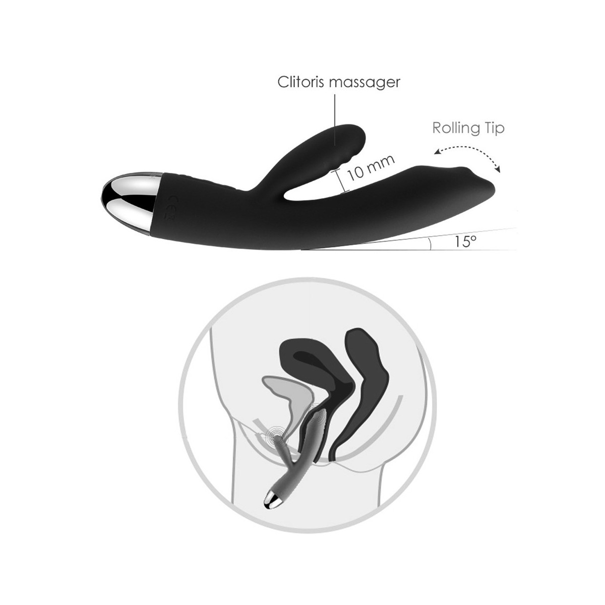 Setoso vibratore liscio coniglio vibratore con 2 motori stimolanti nell'albero leggermente curvo e stimolatore del clitoride. Si rovina con 7 modi di vibrazione ad alta frequenza in 5 intensità ciascuno. La punta ergonomica del punto G offre un'ulteriore sfera massaggiante, che si arrotola su e giù quando la vibrazione all'interno è presente. Lo stimolatore del clitoride è dotato di una struttura a ondulazione ad alta intensità di stimolazione. Ricaricabile con il cavo di ricarica USB incluso. Custodia inclusa.
