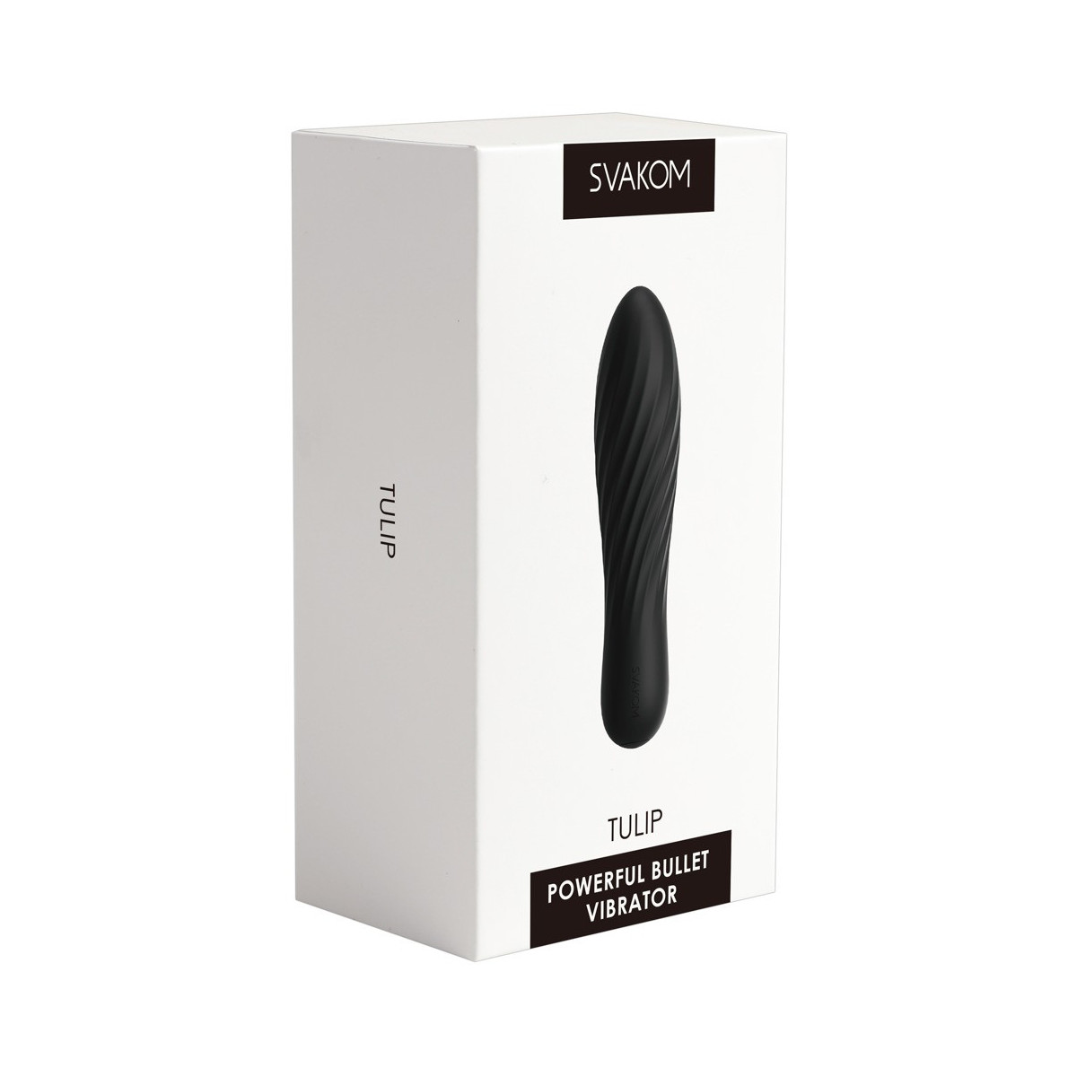 Potente Bullet Vibrator Tulip di Svakom in un design con scanalature sinuose. Piccolo, compatto, potente e ultra-morbido, il vibratore in silicone si annida perfettamente nella tua mano - e sta in qualsiasi tasca! Il leggero (42 g), ad alta intensità di stimolazione e adatto ai principianti, può essere incluso in modo eccitante in qualsiasi gioco solitario o amoroso.