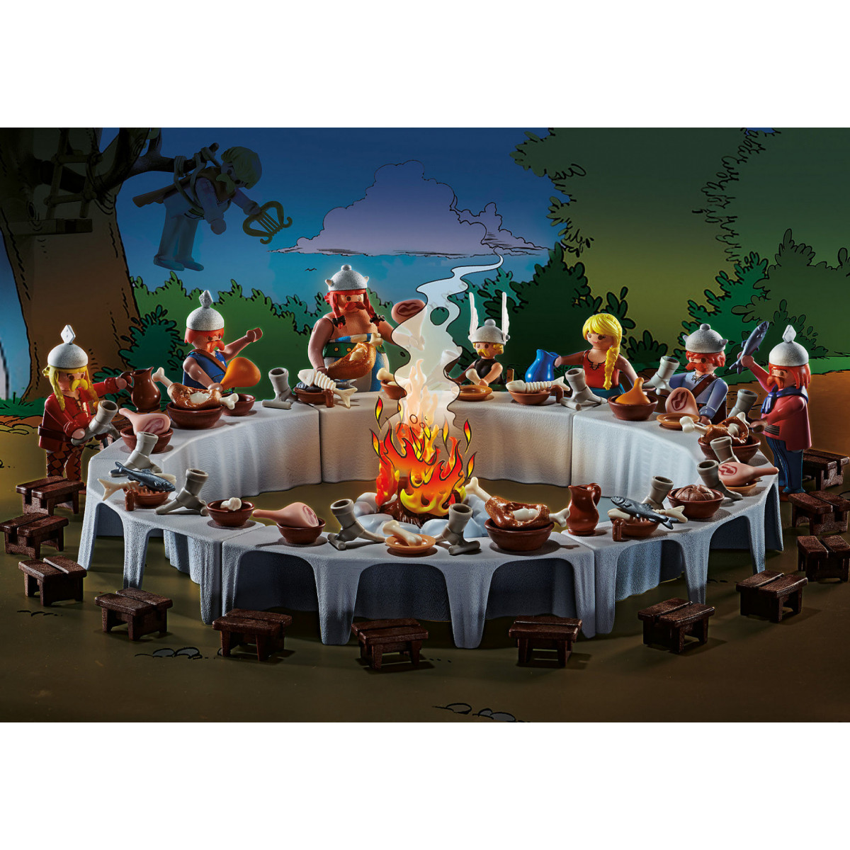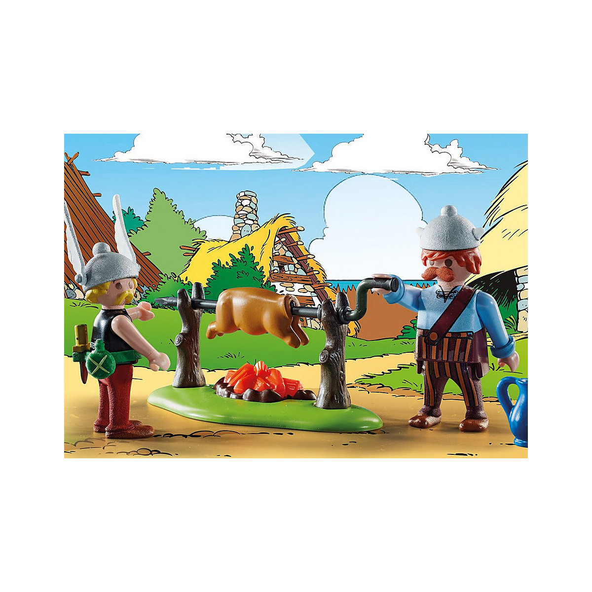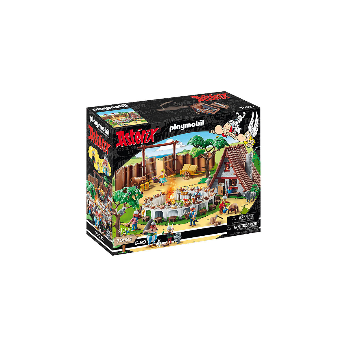 L'anno è il 50 a.C. La Gallia è interamente occupata dai Romani. Ebbene, non del tutto... un piccolo villaggio di indomabili Galli PLAYMOBIL resiste ancora agli invasori. Insieme, l'inseparabile trio Asterix, Obelix e Idefix vive indimenticabili avventure che spesso portano i coraggiosi Galli in terre lontane. Dopo ogni viaggio, tornano al loro tranquillo villaggio e si riposano dagli scontri con i Romani organizzando un banchetto. La grande tavola è già apparecchiata e un succulento cinghiale arrostisce allo spiedo sul fuoco. Prima che la festa possa iniziare, Obelix posa il suo menhir nella capanna di Asterix e mette alcune ossa nella ciotola per Idefix. Il set PLAYMOBIL contiene i famosi Galli Asterix e Obelix, il cane Idefix, quattro abitanti del villaggio, la capanna di Asterix con arredi, una banchetto con spazio per 18 Galli, un girarrosto con cinghiale, un menhir, piatti e stoviglie e tanti fantastici accessori, per rivivere emozionanti avventure con gli indomiti Galli.