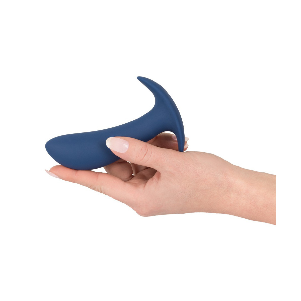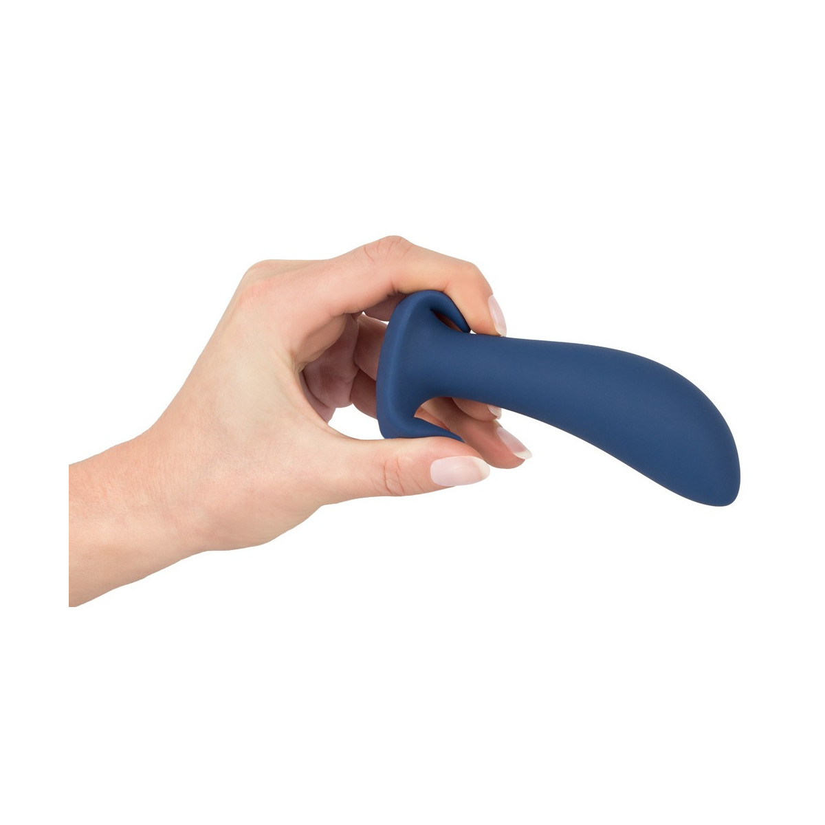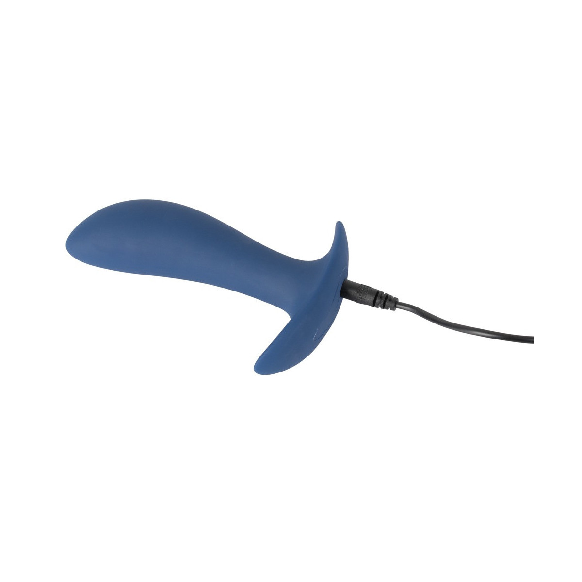 Plug anale morbido e setoso con base larga (tappo) e fusto leggermente ricurvo. Con 10 modalità di vibrazione, comodamente controllabili con il telecomando o con la semplice pressione di un pulsante. Ricaricabile con il cavo USB in dotazione. Batterie per il telecomando incluse.