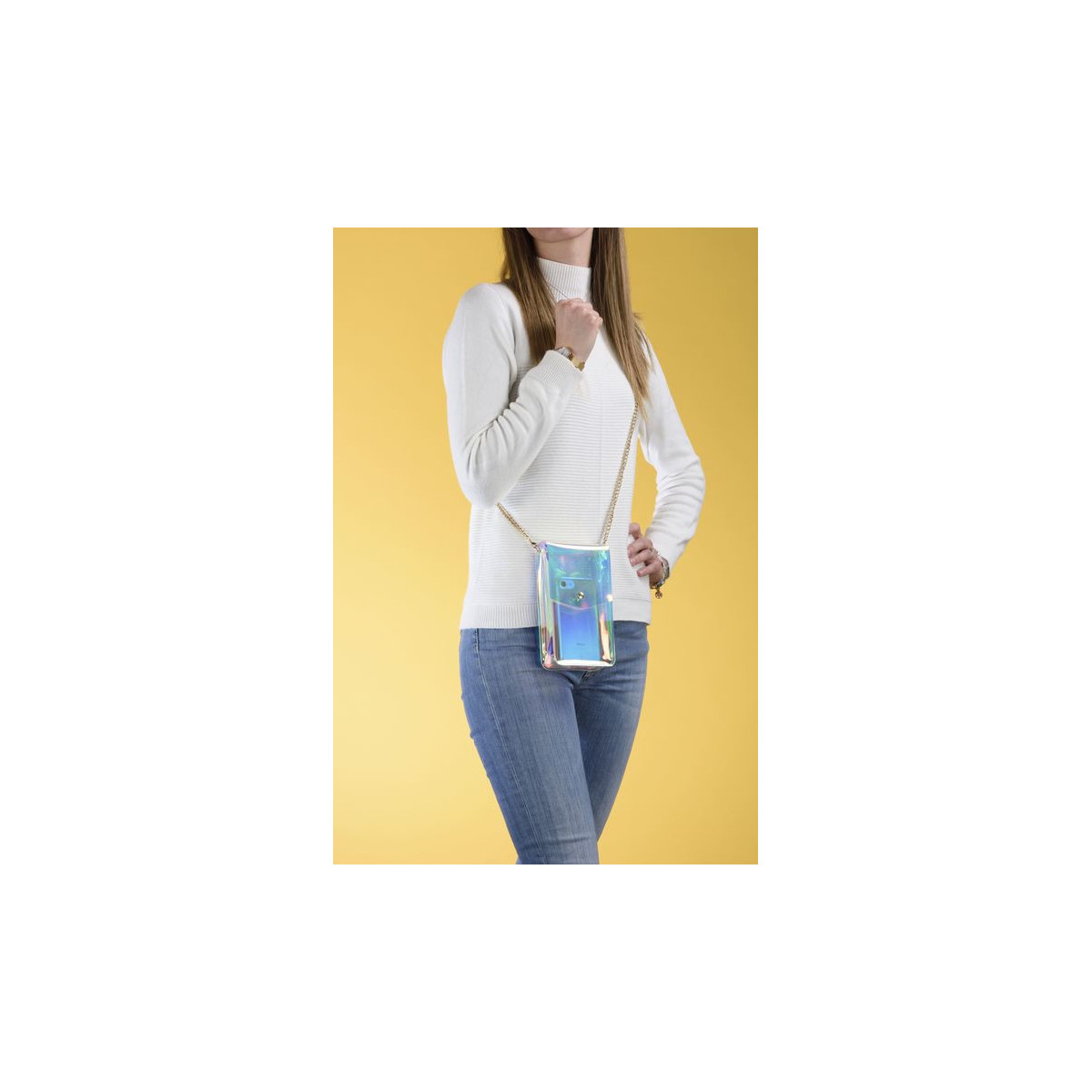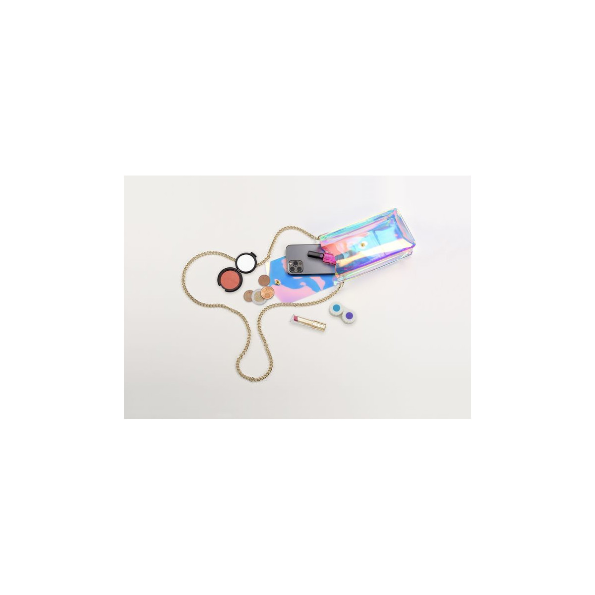 HOLOGRAPHIC BAG è la custodia universale da indossare a tracolla per avere sempre con sé il proprio smartphone. Semi-trasparente con effetto iridescente che cambia colore a seconda della luce, è dotata di tracolla in metallo dorato abbinata al bottone di chiusura. Le due tasche interne consentono di riporre carte e monete. Pratica e funzionale, regala un tocco di stile ad ogni outfit!