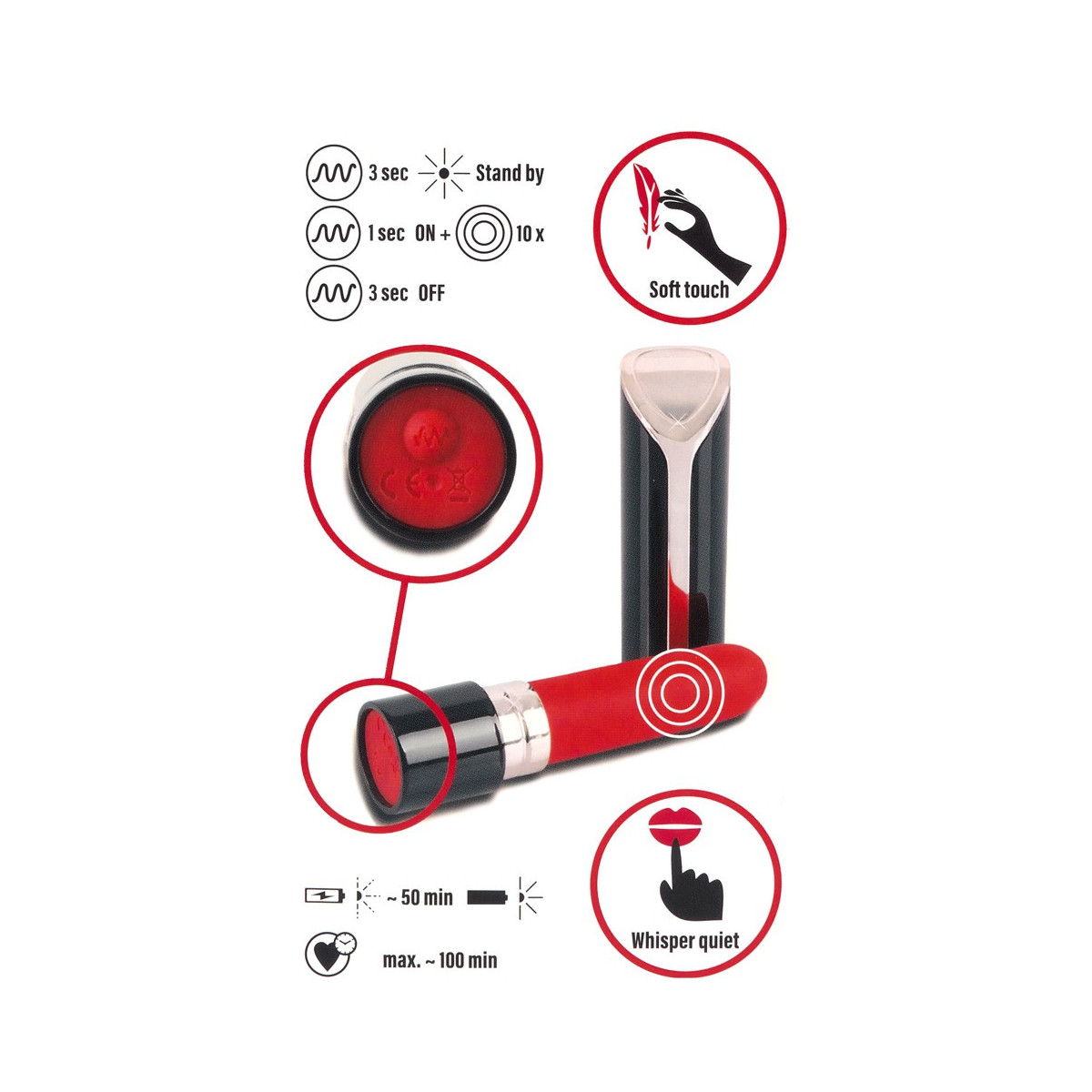 Setoso e delicato mini vibratore in rossetto elegante guardare fino al tappo. Un highlight per ogni borsa che coccola i punti caldi interni ed esterni con 10 modalità di vibrazione. Ricaricabile con il cavo di ricarica USB incluso.