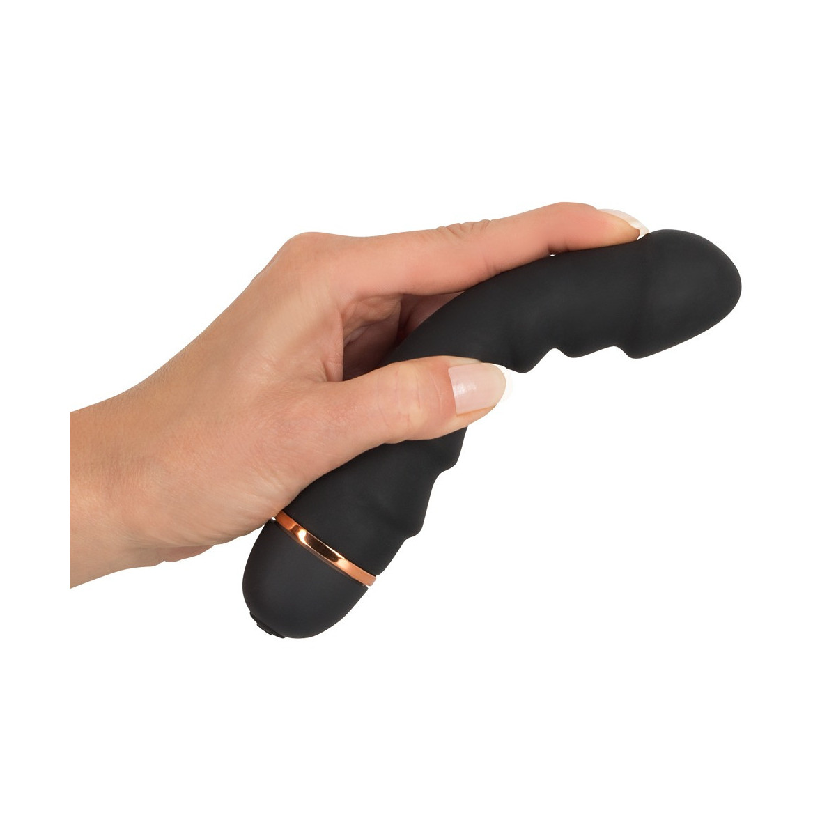 Vibratore nero con glande indicato e 5 onde di stimolazione stimolanti sull'albero. Le favolose 20 modalità di vibrazione sono controllabili con un solo pulsante. Lunghezza totale 16,5 cm. 2,5-3,3 cm. Materiale: silicone, ABS con rivestimento in PU. (Si prega di ordinare la batteria separatamente: 1 x AA)