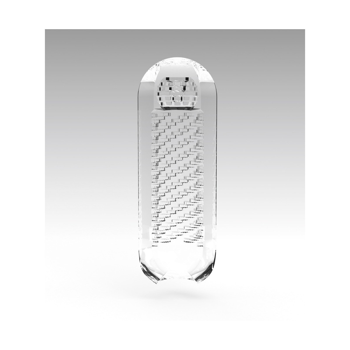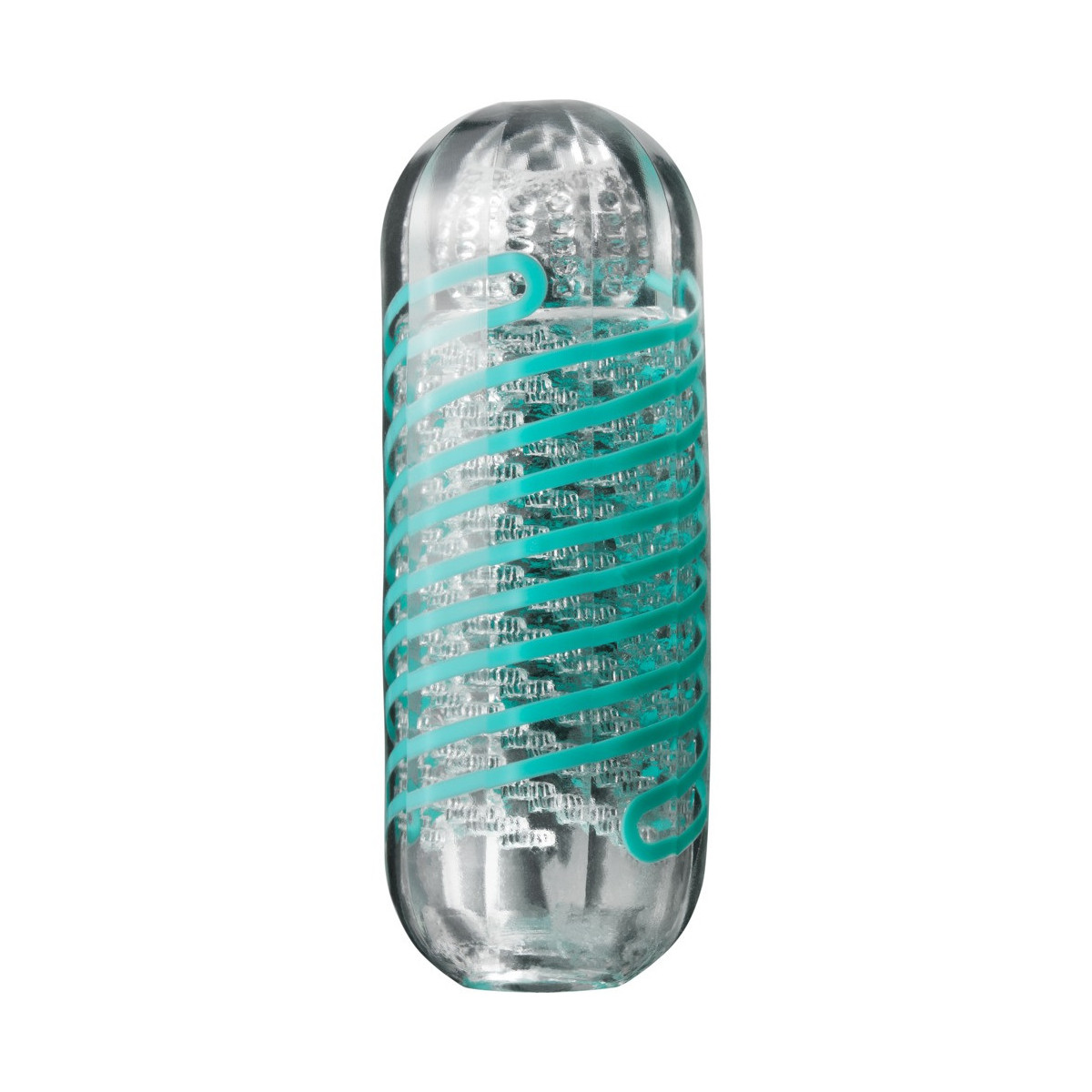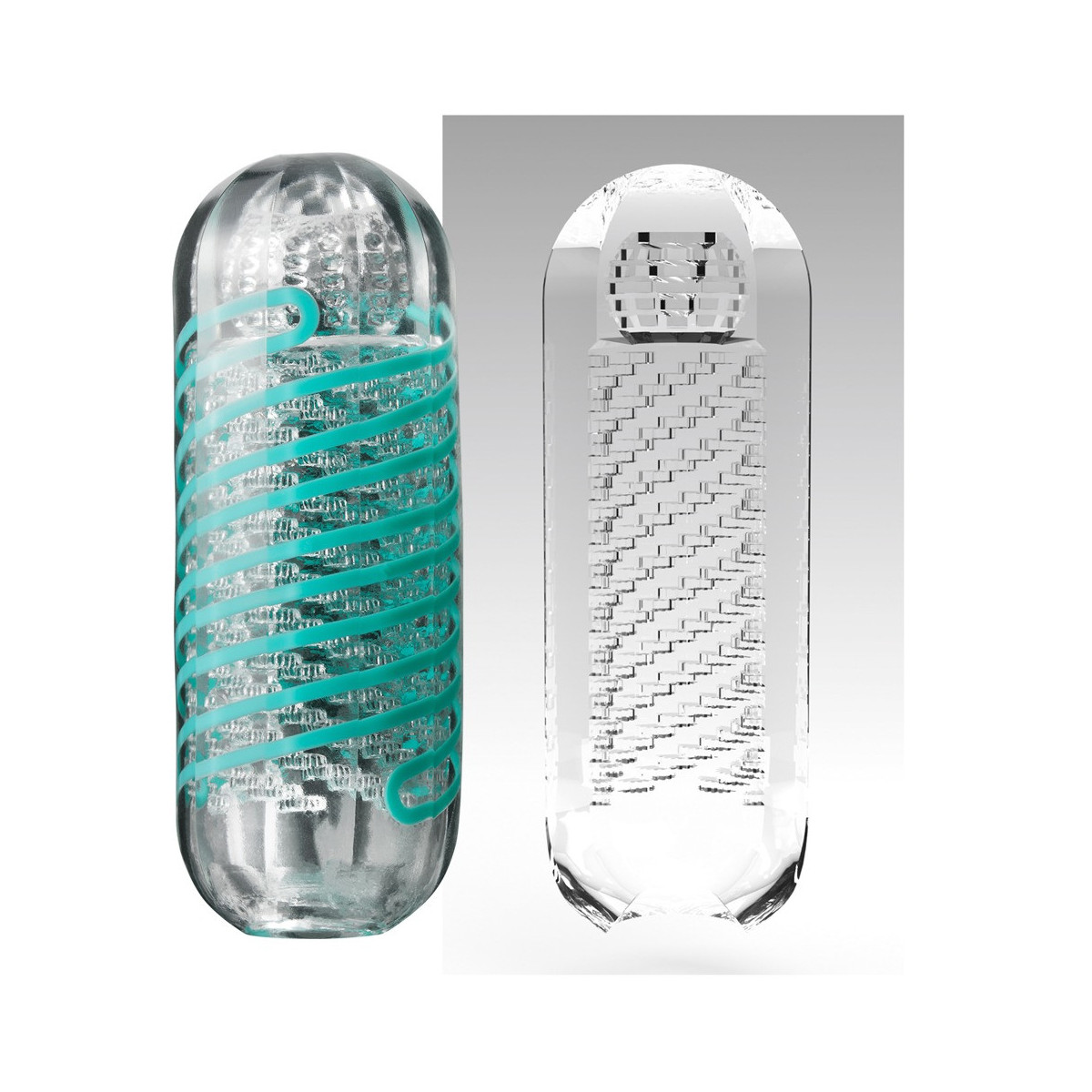 Spinner masturbatore trasparente e riutilizzabile di Tenga con bobina integrata che fa girare il masturbatore quando viene penetrato (meccanismo a bobina interna). Canale del piacere strutturato in modo distinto dagli stimoli.
