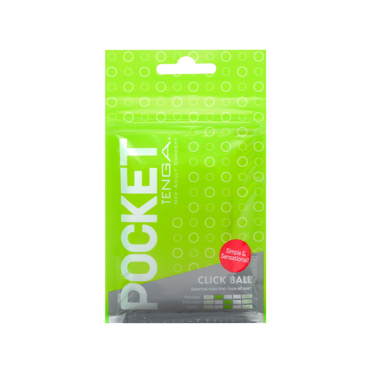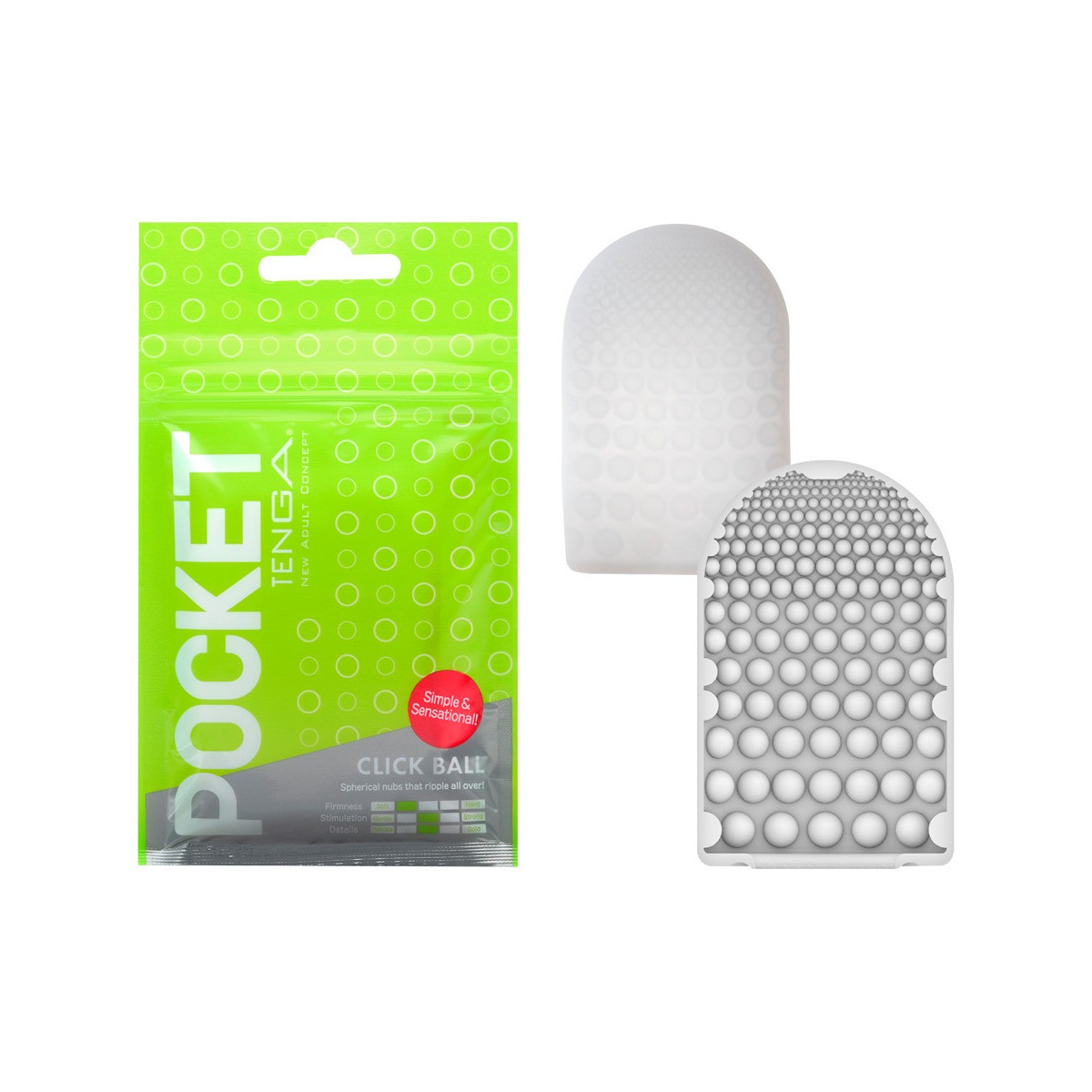 Masturbatore usa e getta Pocket Click Ball di Tenga con struttura di irritazione a palla all'interno. Discretamente confezionato in un sacchetto tascabile - perfetto per gli spostamenti. Il manicotto masturbatore ultra flessibile ed estremamente sottile è usato insieme durante il handjob con il lubrificante allegato. Il manicotto altamente estensibile si adatta a tutte le dimensioni del pene.