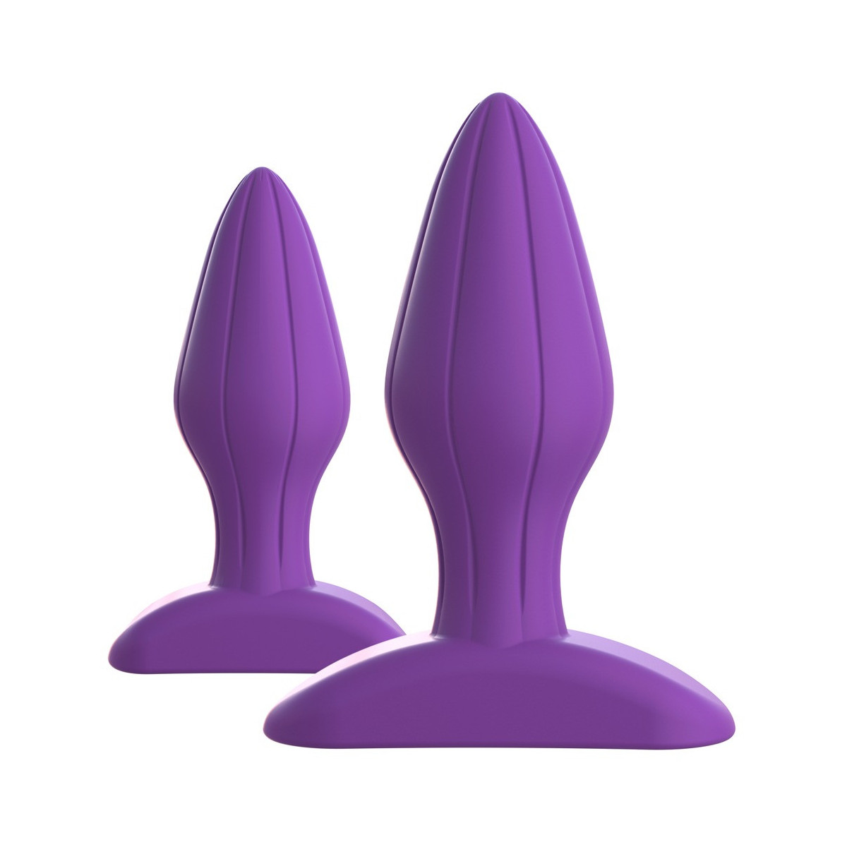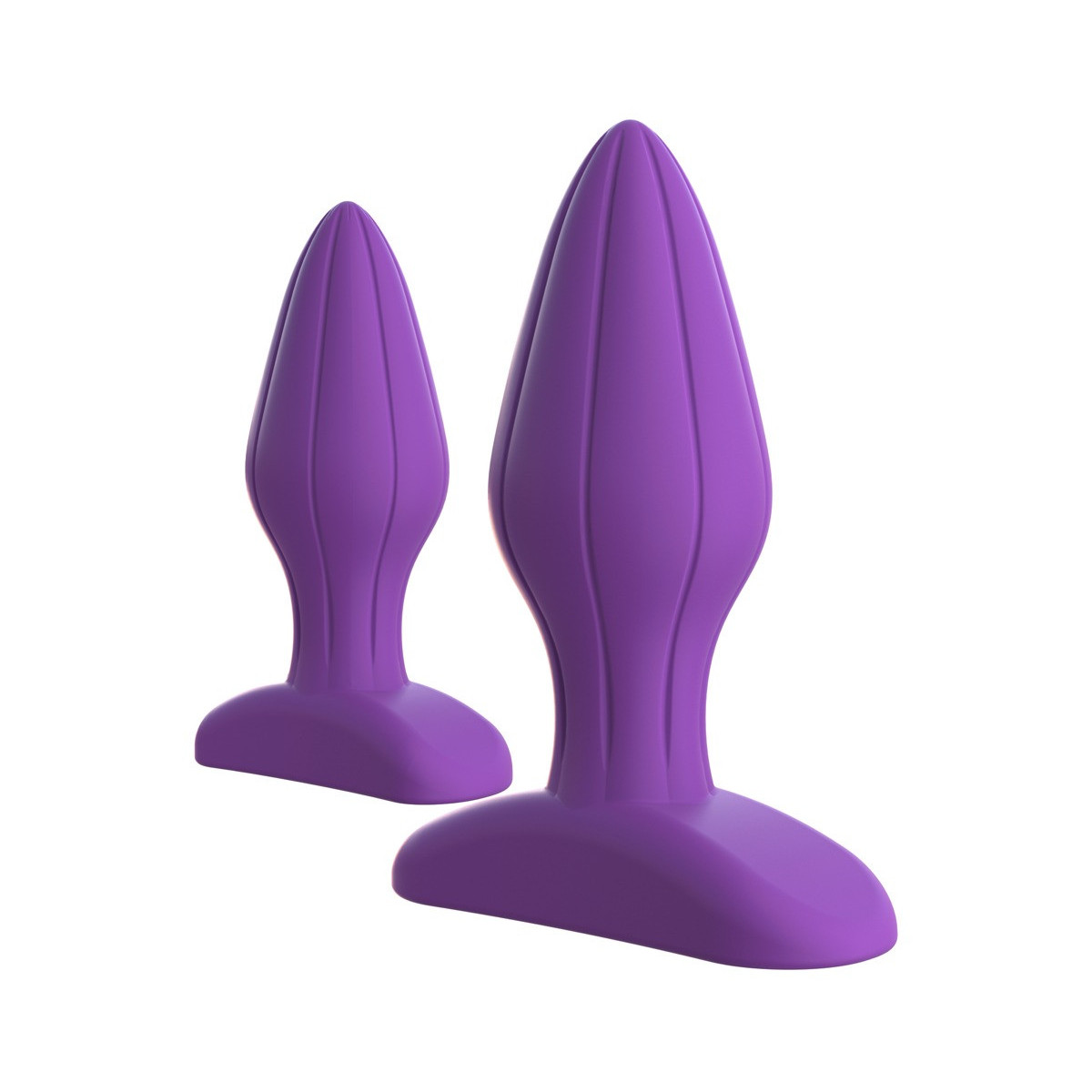 Piacere anale in una confezione doppia! Set con plugs anali in 2 misure diverse. Perfetto per l'allenamento dello stretching - anche per i principianti. Con scanalature di stimolazione verticali e base che può essere utilizzata anche come pratica maniglia. Spina grande lunghezza totale 8,9 cm, lunghezza d'inserimento 7,4 cm, Ø 3,3 cm; Spina piccola lunghezza totale 7,6 cm, profondità d'inserimento 6,4 cm, Ø 2,5 cm. Silicone.