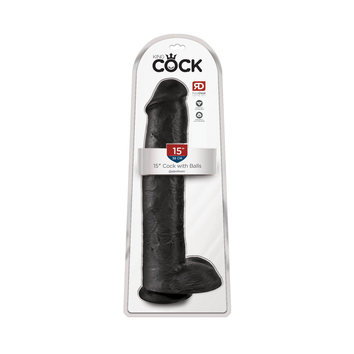 King Cock 15" Cock w Balls Dar - Dildo Realistico con Testicoli, Ventosa, Nero
