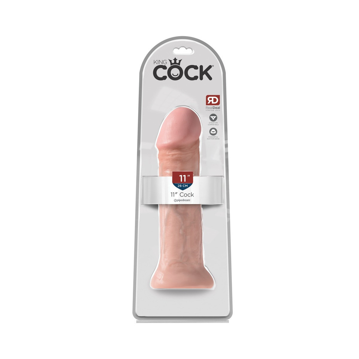 Dildo naturale molto realistico da 11" di King Cock con glande pronunciato e venature. La base di aspirazione permette di cavalcare a mani libere. Naturalmente, questo buon pezzo è anche compatibile con gli strap-on.