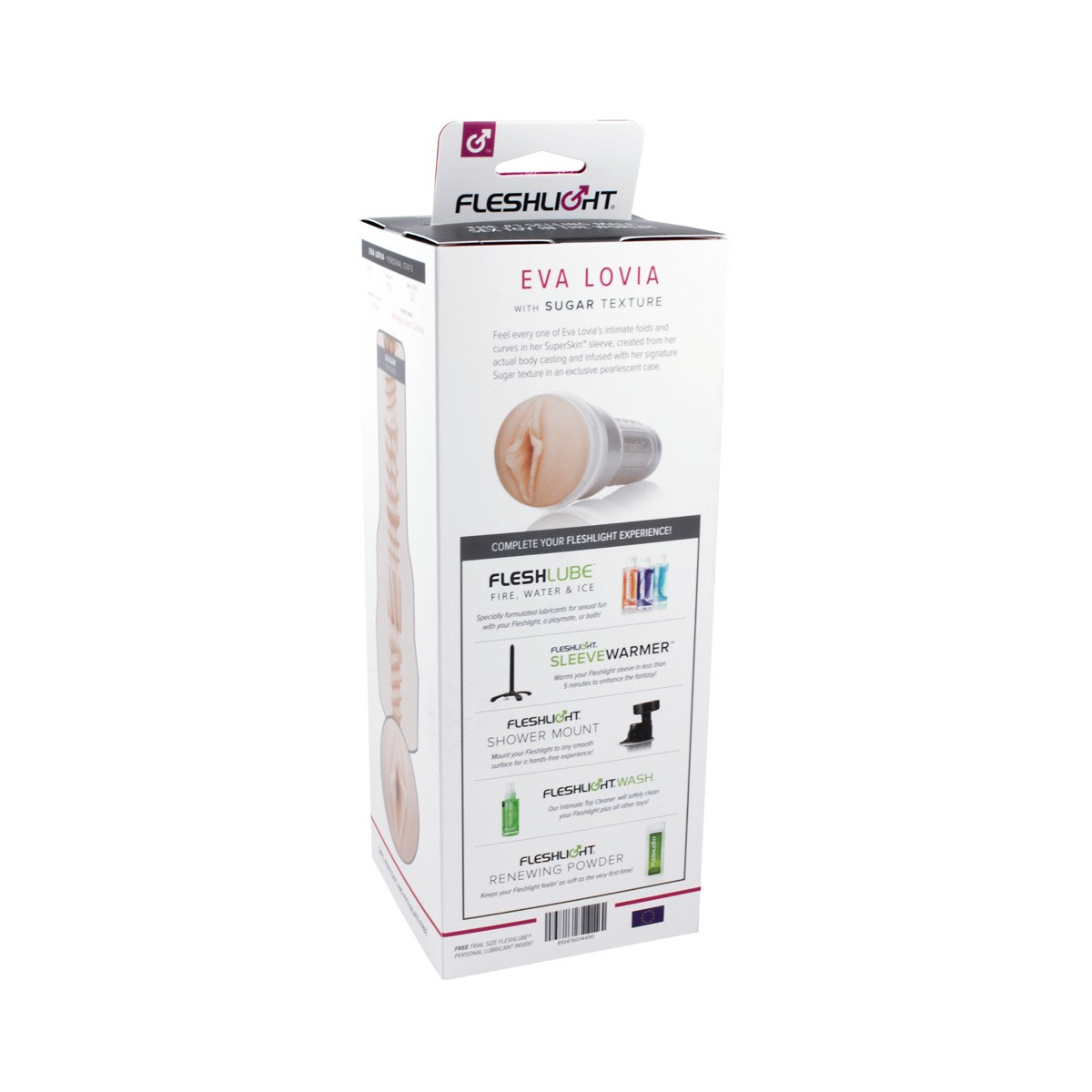 Questo sogno è ora una realtà, perché il masturbatore Eva Lovia Sugar di Fleshlight è stato fedelmente ricreato dalla vagina della sexy pornostar Eva Lovia. Dolci labbra e un piccolo autografo di Eva Lovia segnano l'ingresso all'eccitante canale del piacere scanalato e deliziosamente nodoso del masturbatore. Per la pulizia successiva, il masturbatore è rimovibile dalla scatola color perla.